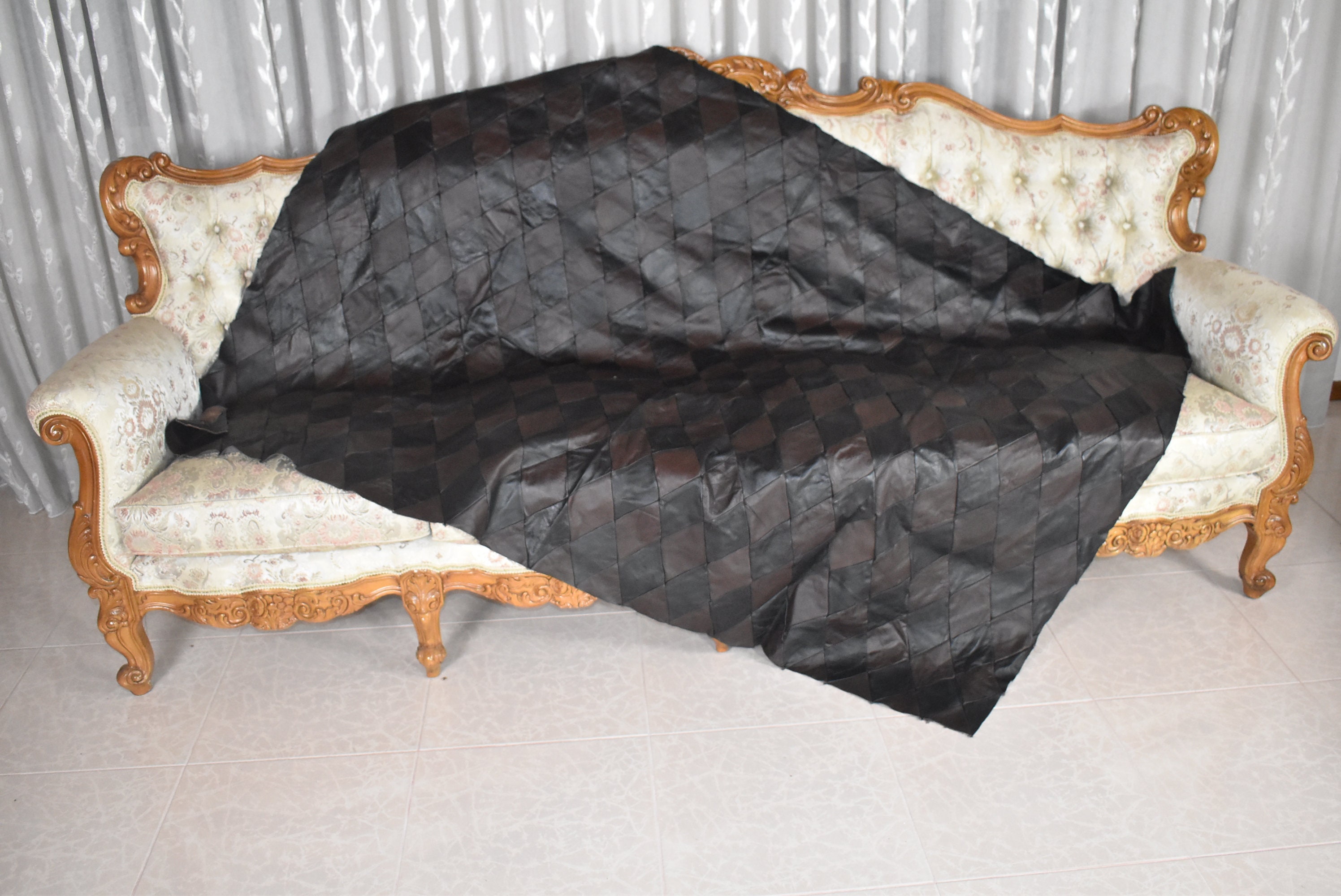 Natural Leather Sofa Throw | Leather Blanket | Black and Brown hand...