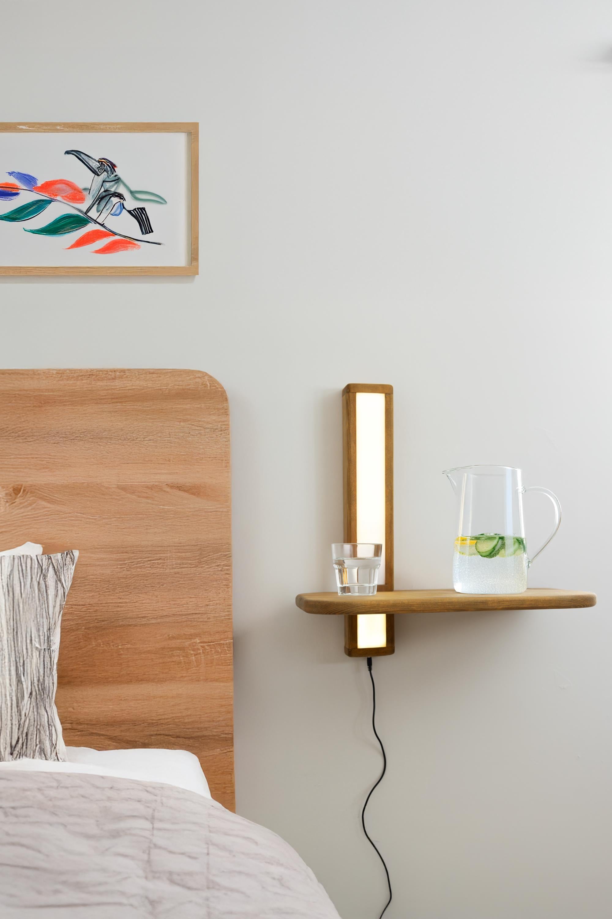 Floating Wood Nightstand with LED Lighting - Handmade Bedside Table