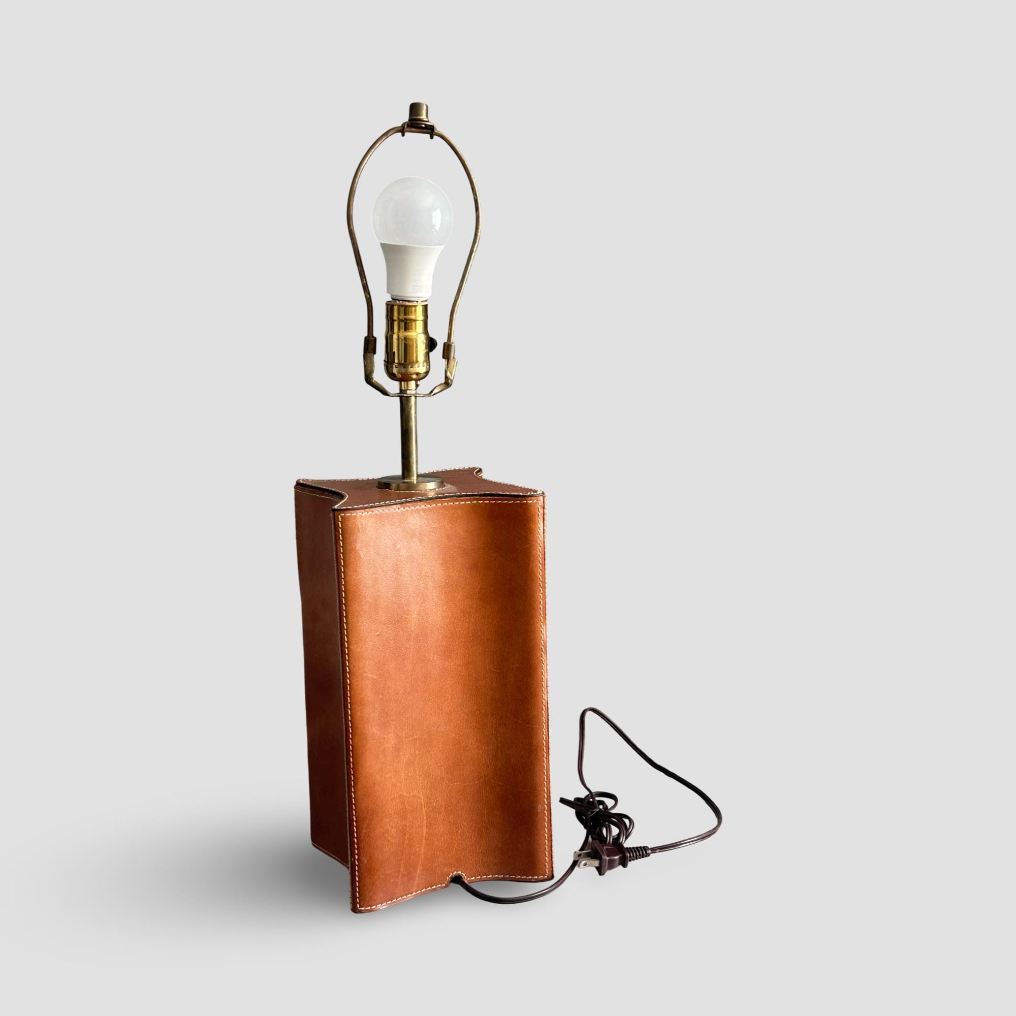 MCM Vintage brown camel leather wrapped table lamp, office library ...