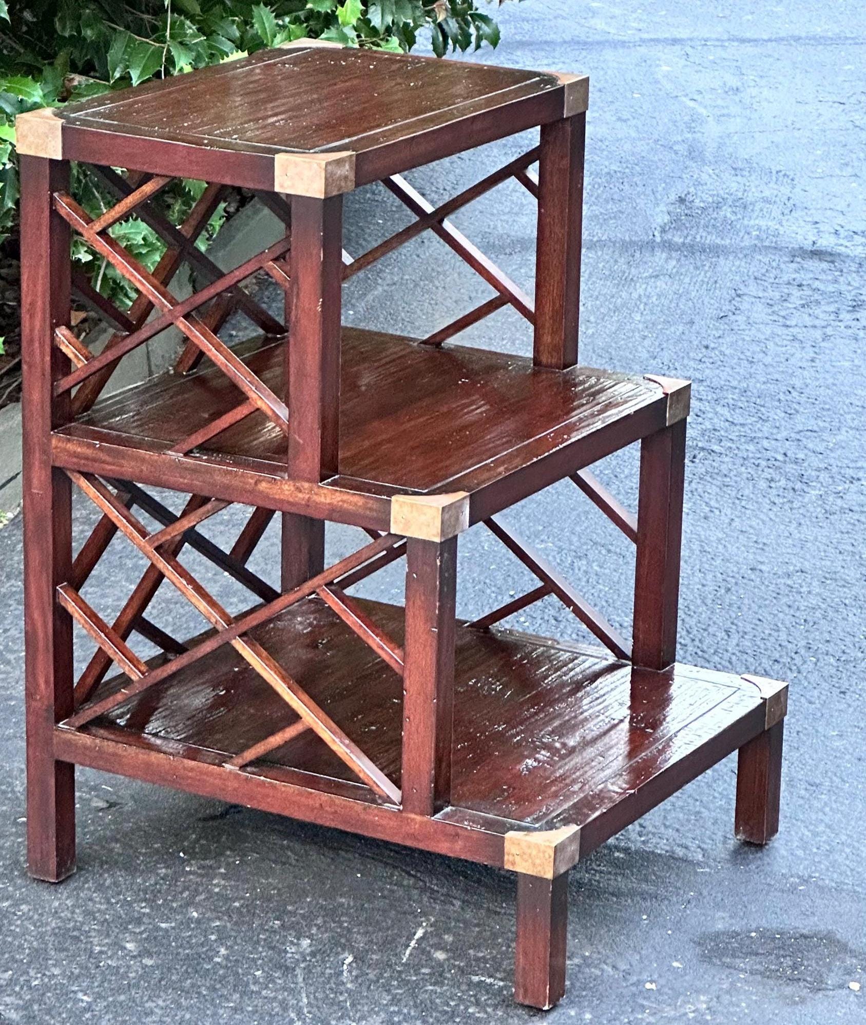 Mid Century Henredon Campaign Style Library Steps Table: Brass Fret...