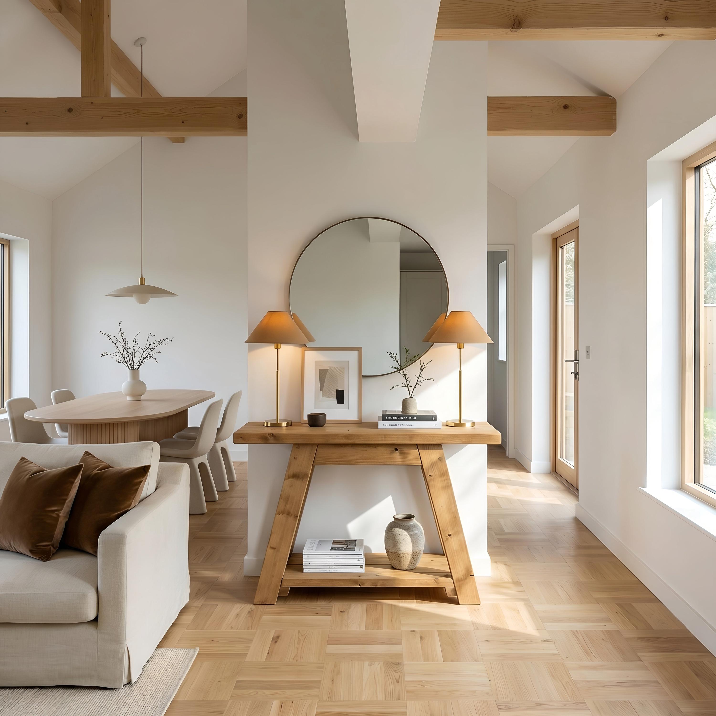 DASI Light Oak Colour Console Table With Shelf Please note as it is a handmade natural item, each it...