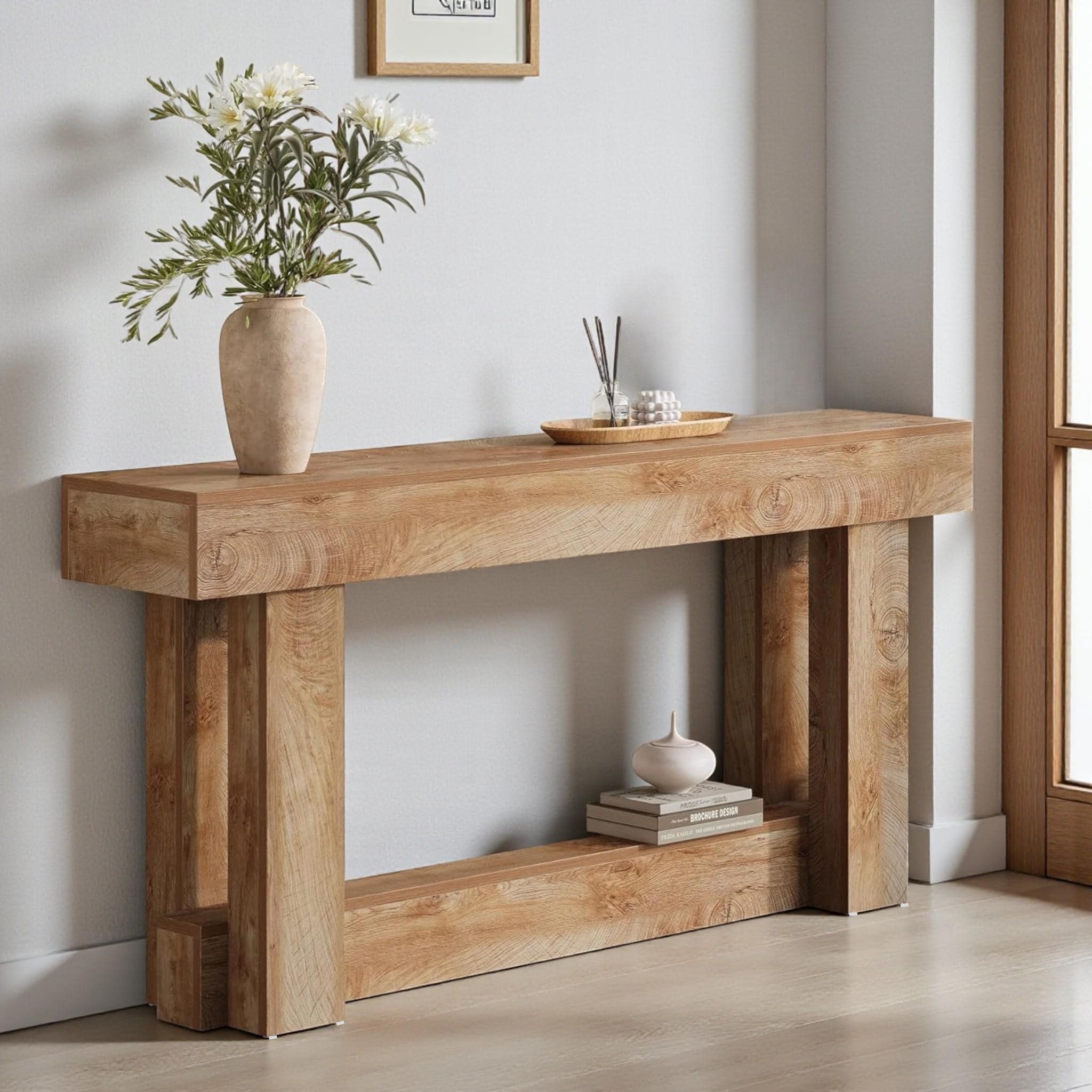 Handcrafted Wooden Sofa Table with Shelves - Narrow Console Table