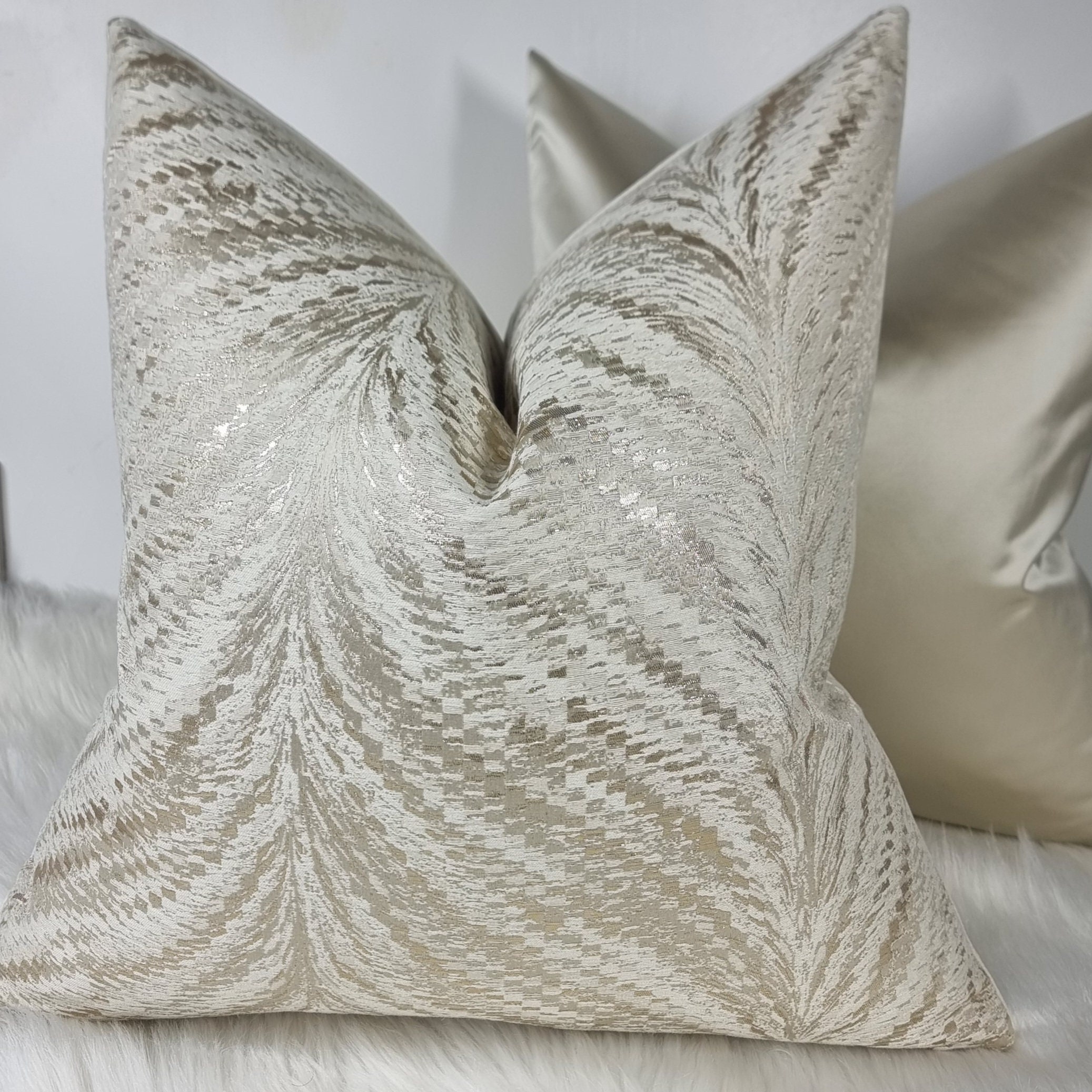Luxury Cream & Gold Metallic Luxor Cushion Cover New Home Sofa ...