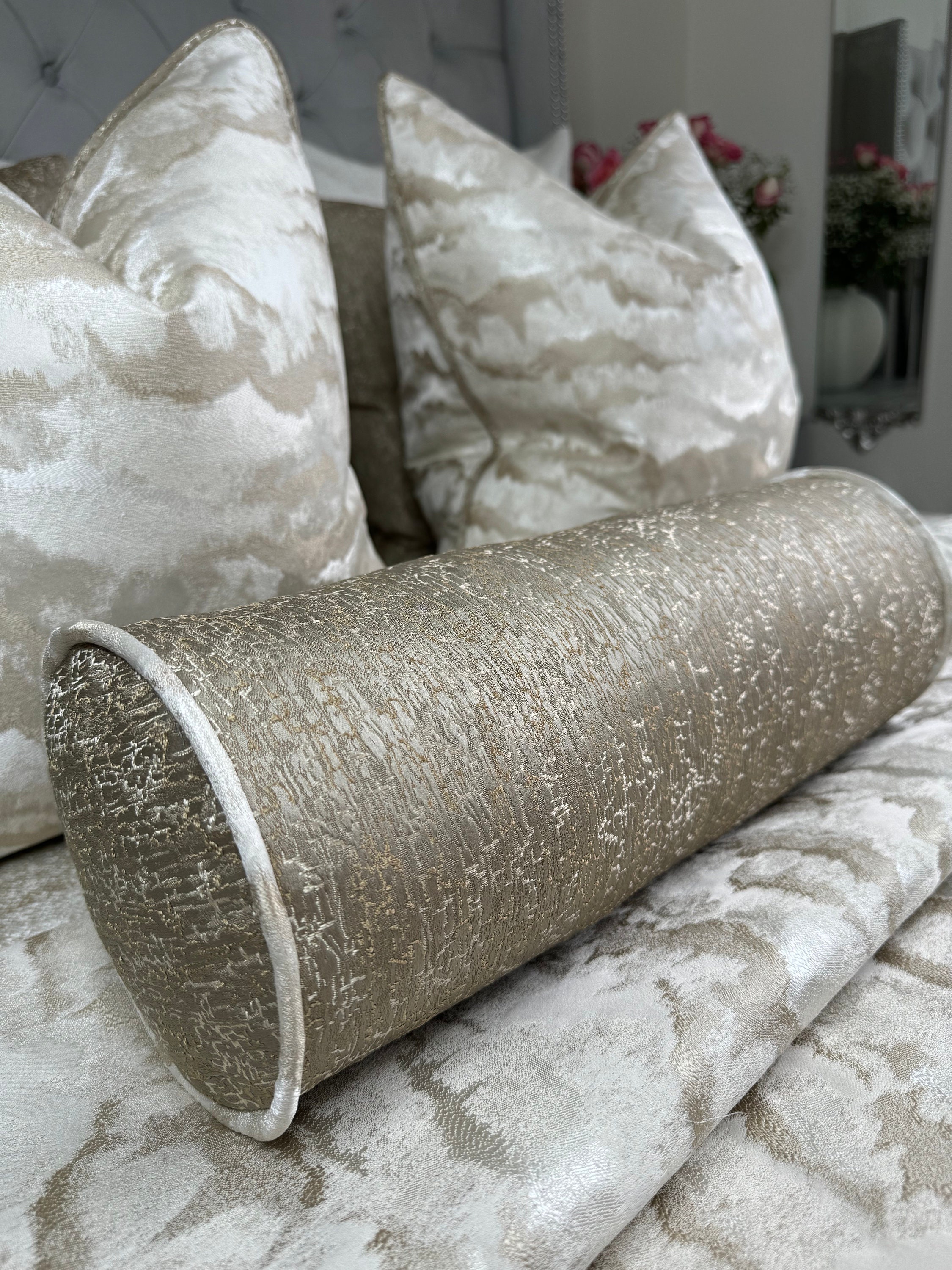 "Gold Cushion, Gold Pillow, Bolster Cushion 16\" x 6\&quo...