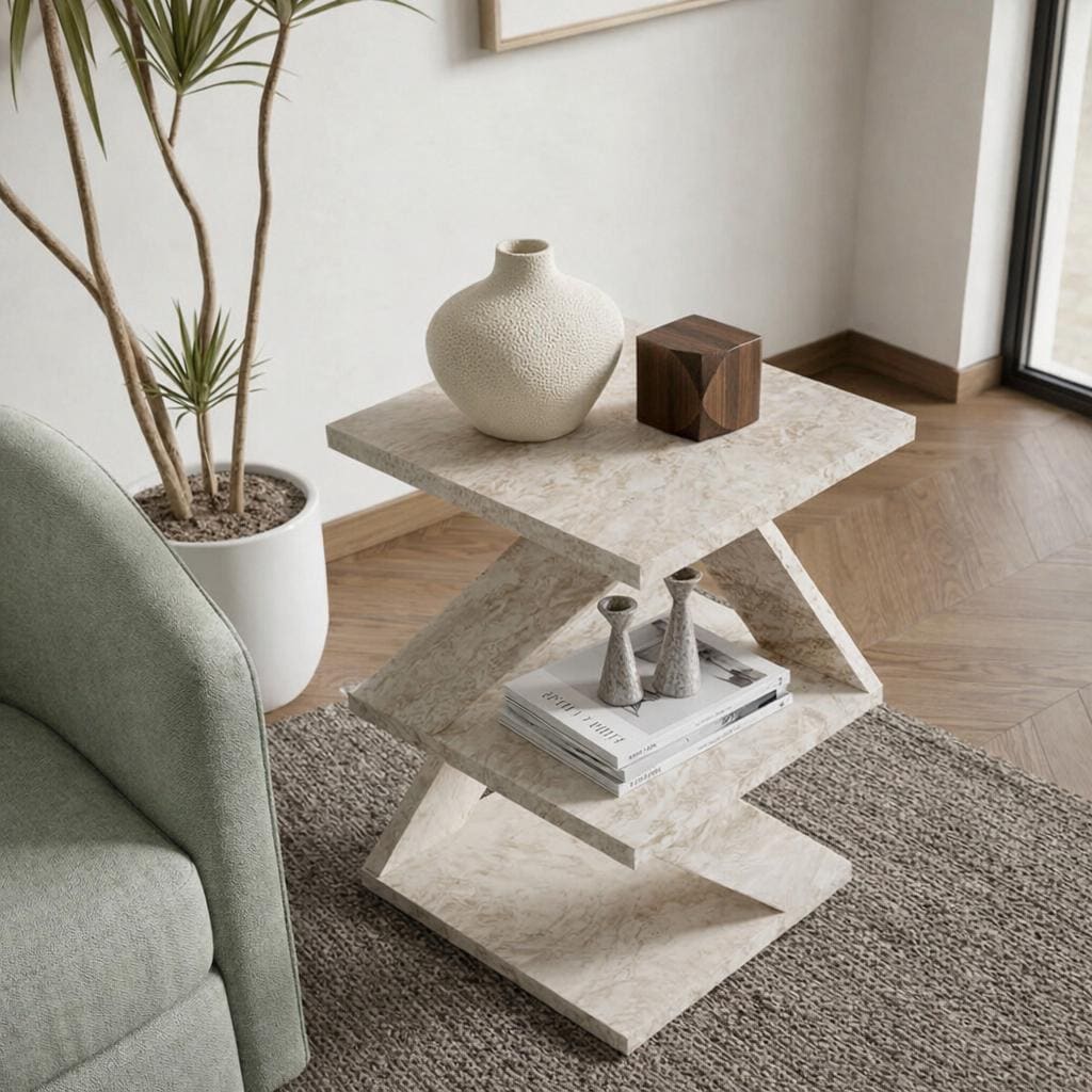 Modern Marble Side Table - Geometric Z Shape End Table with Shelf, ...