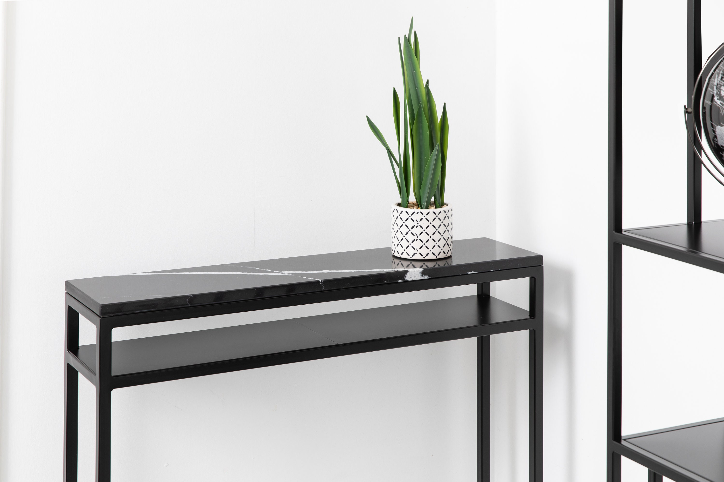 Double Shelf Marble Console Side End Table - Nero Marquinna Marble Entranceway/Hallway double shelf ...
