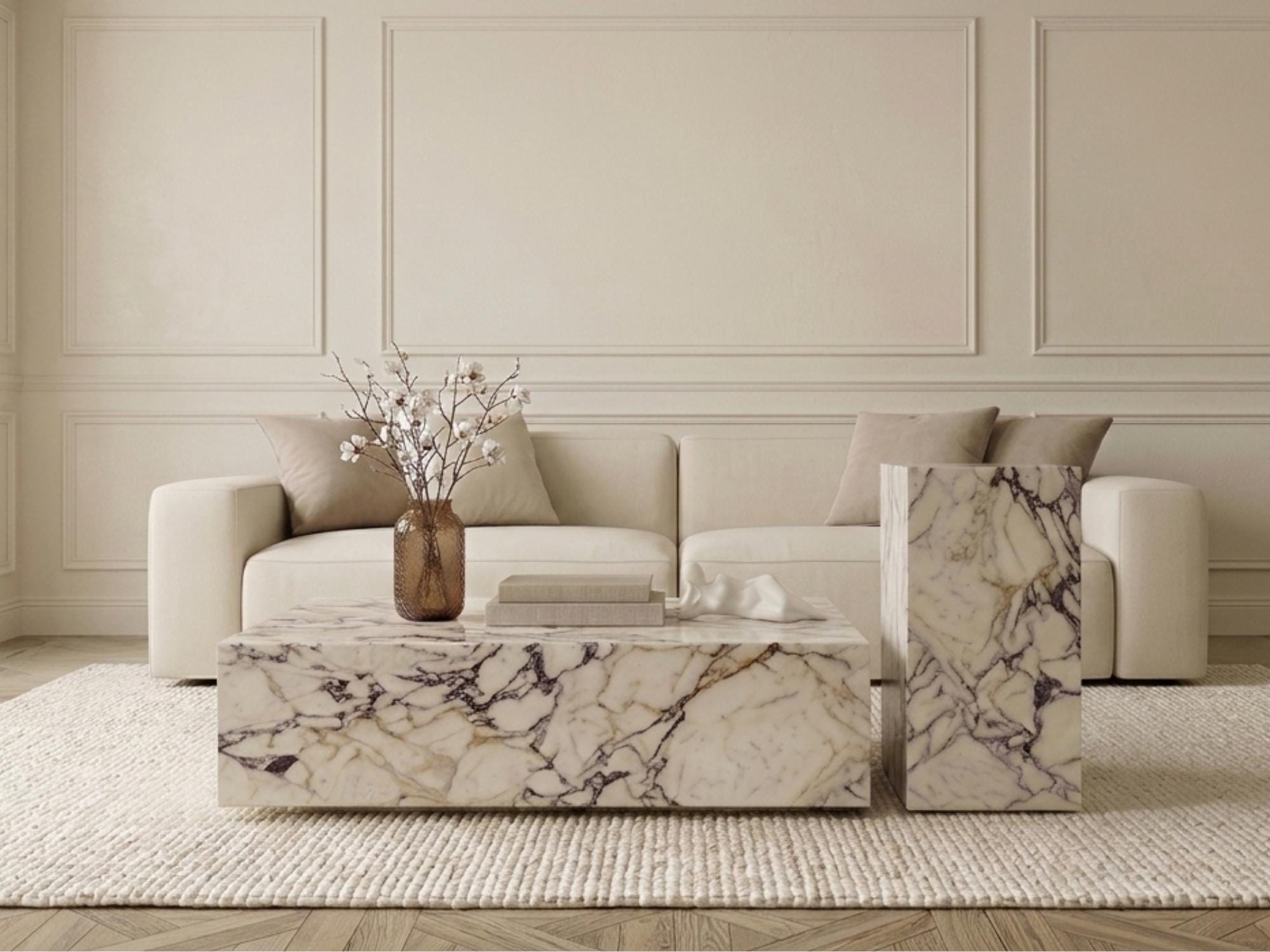 Calacatta Viola Marble Plinth Table, Luxury Marble Coffee Table, Ma...