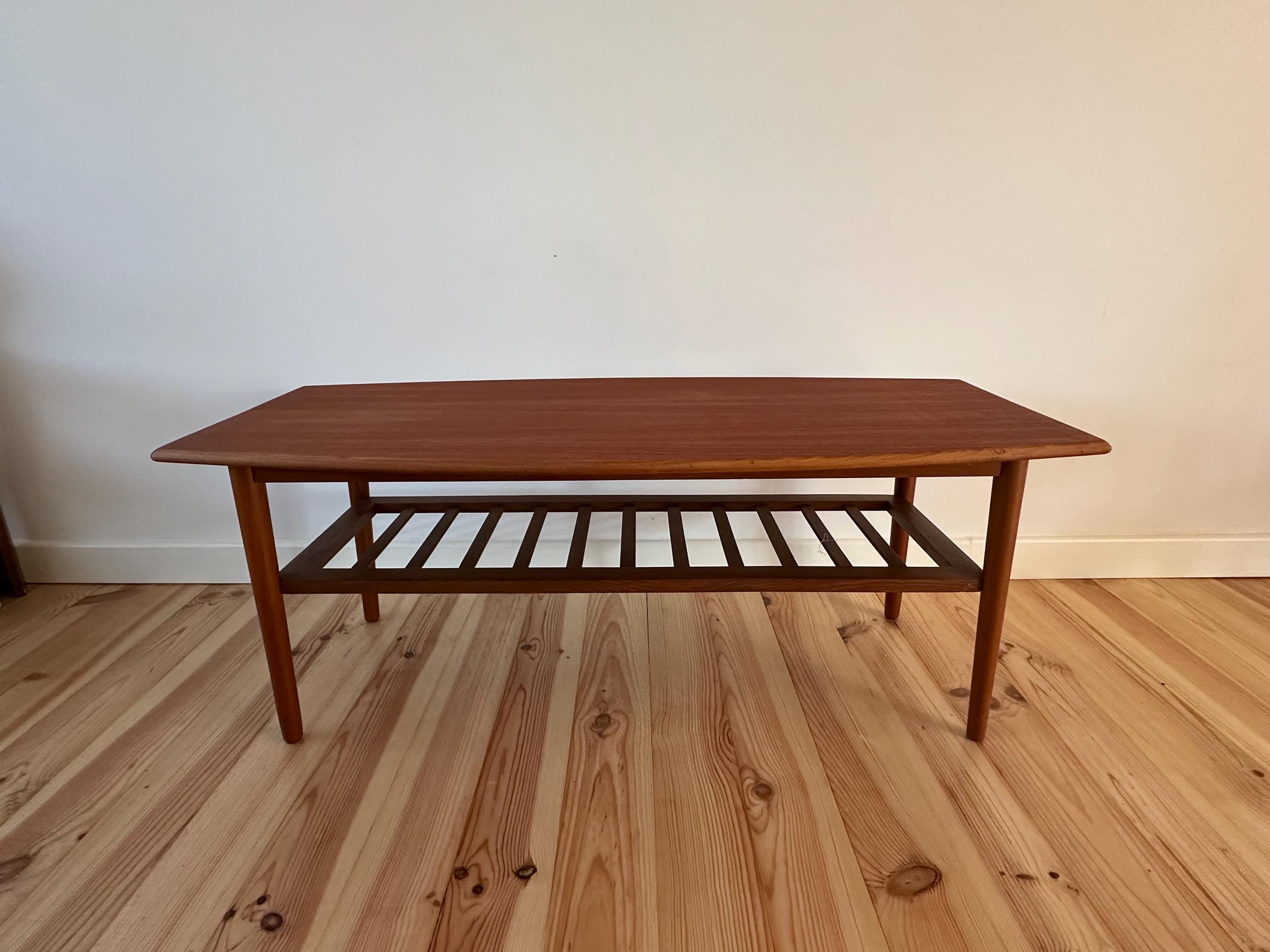 • Danish Teak Mid Century Coffee Table - Slatted Magazine Shelf Surfb...