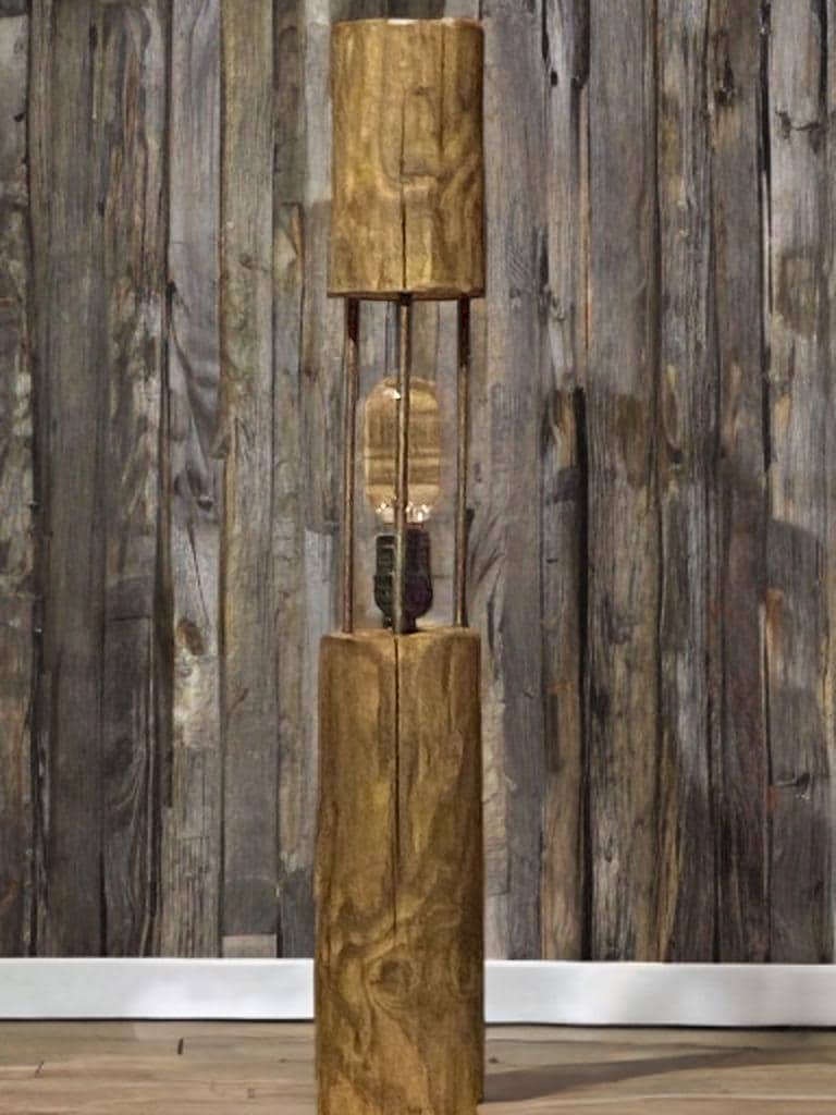 Rustic table lamp, handmade from reclaimed wood wired in vintage si...