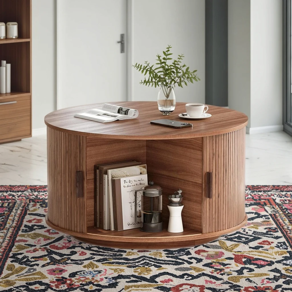 Maupvit 31.5" Drum Coffee Table Sliding Tambour Door Wood Top ...