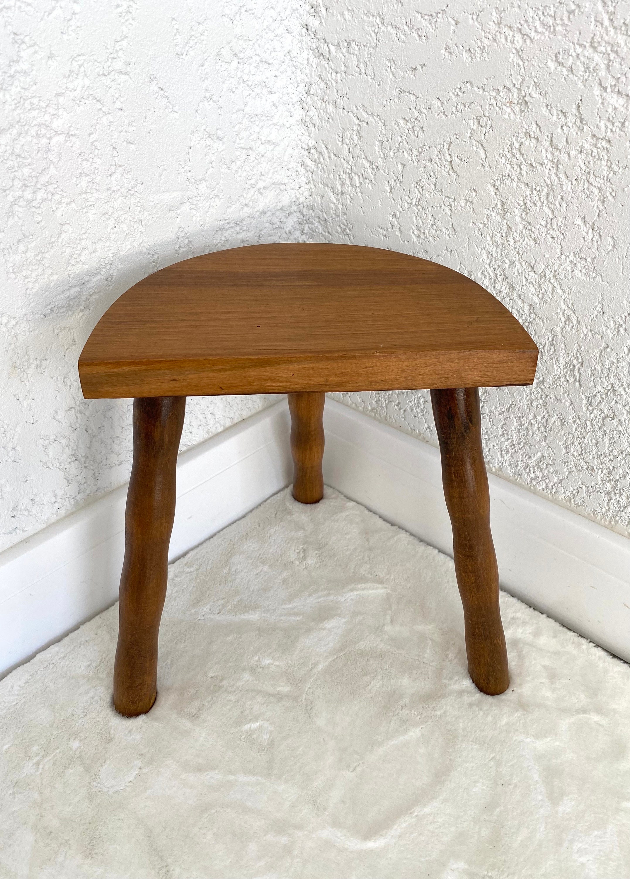 "French tripod \"half moon\" solid turned wood STOOL...