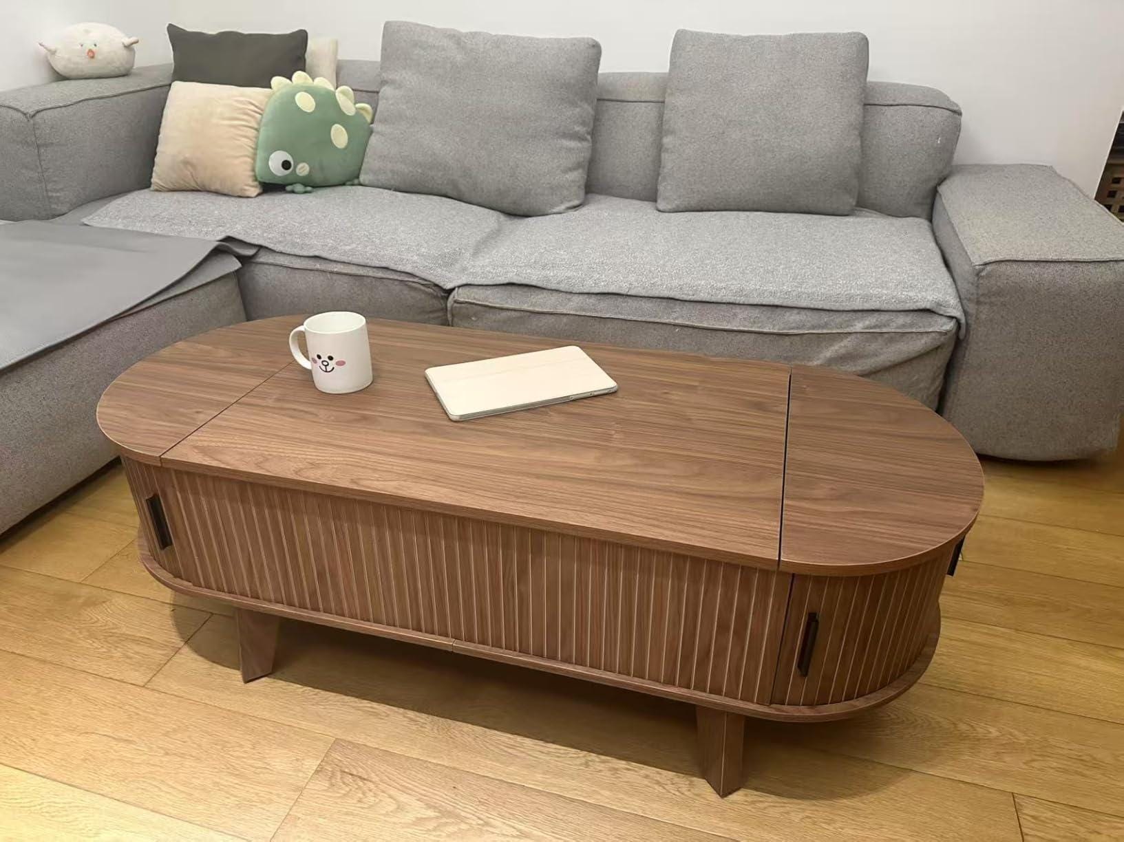 Oval Lift Top Coffee Table with Storage, Mid Century Tambour Door W...