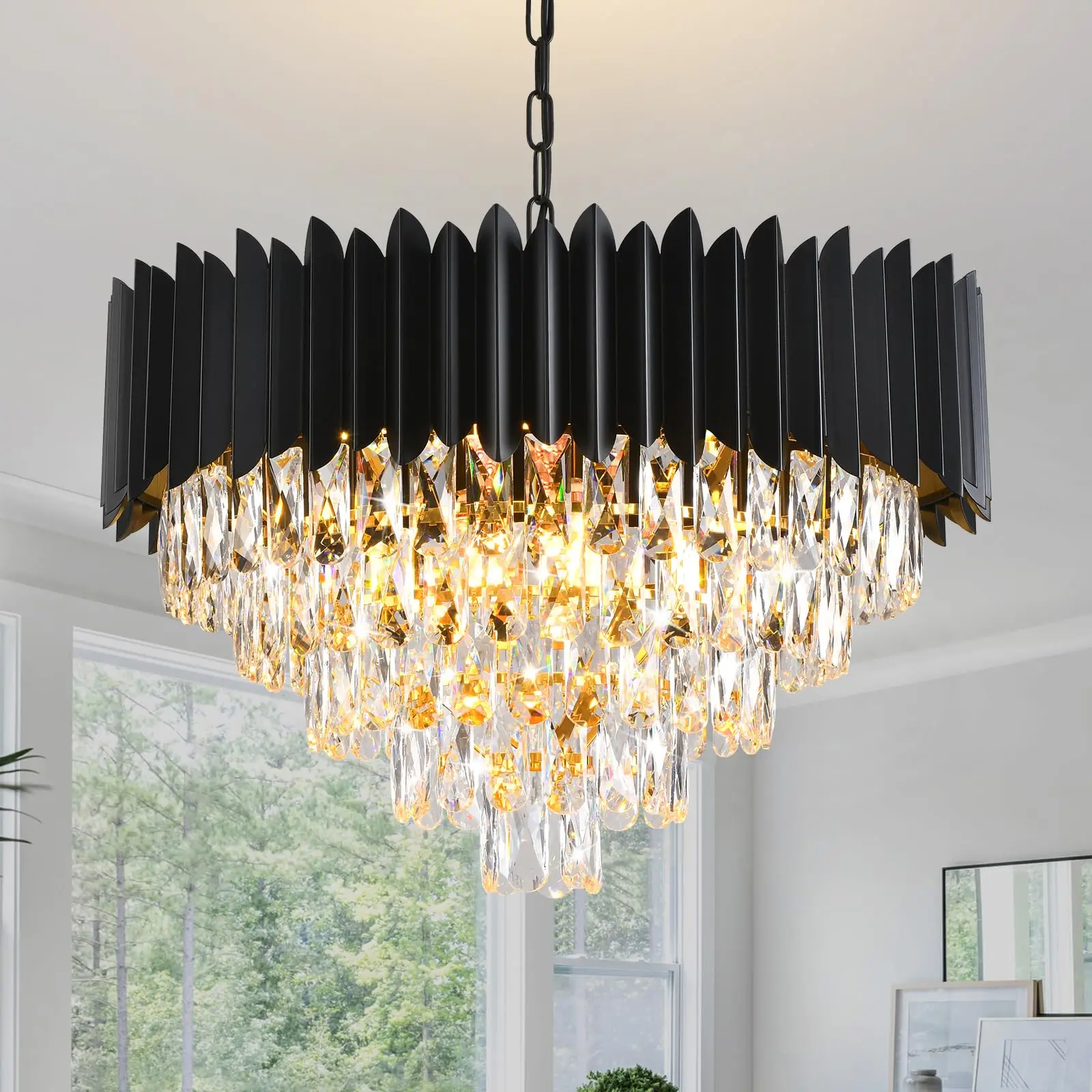 Modern Black Crystal Chandelier,Large 5-Tier Semi-Flush Mount Dinin...