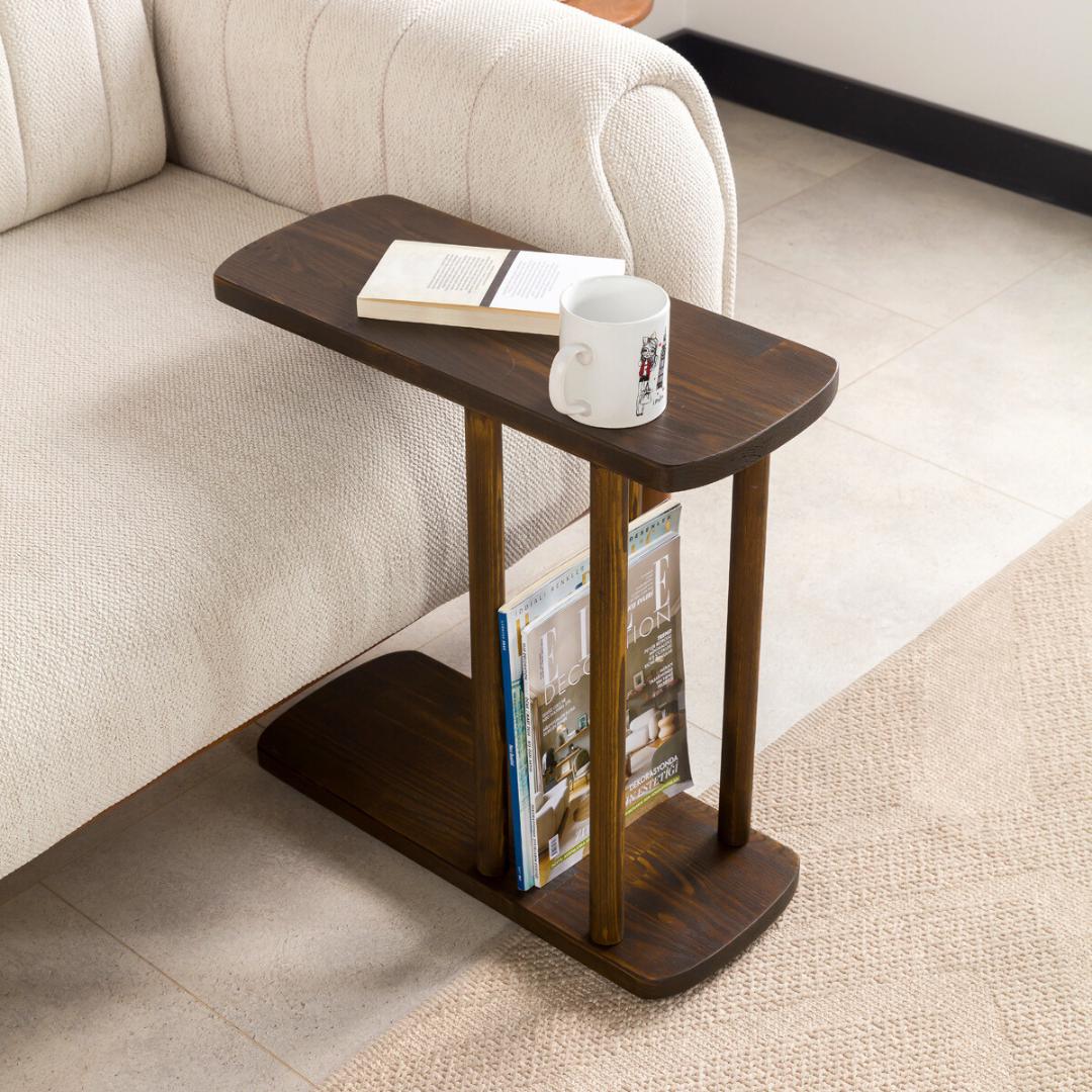 "Narrow End Side Coffee Table with Storage C Shape Couch Side Table | Solid Pine Wood Sofa End ...
