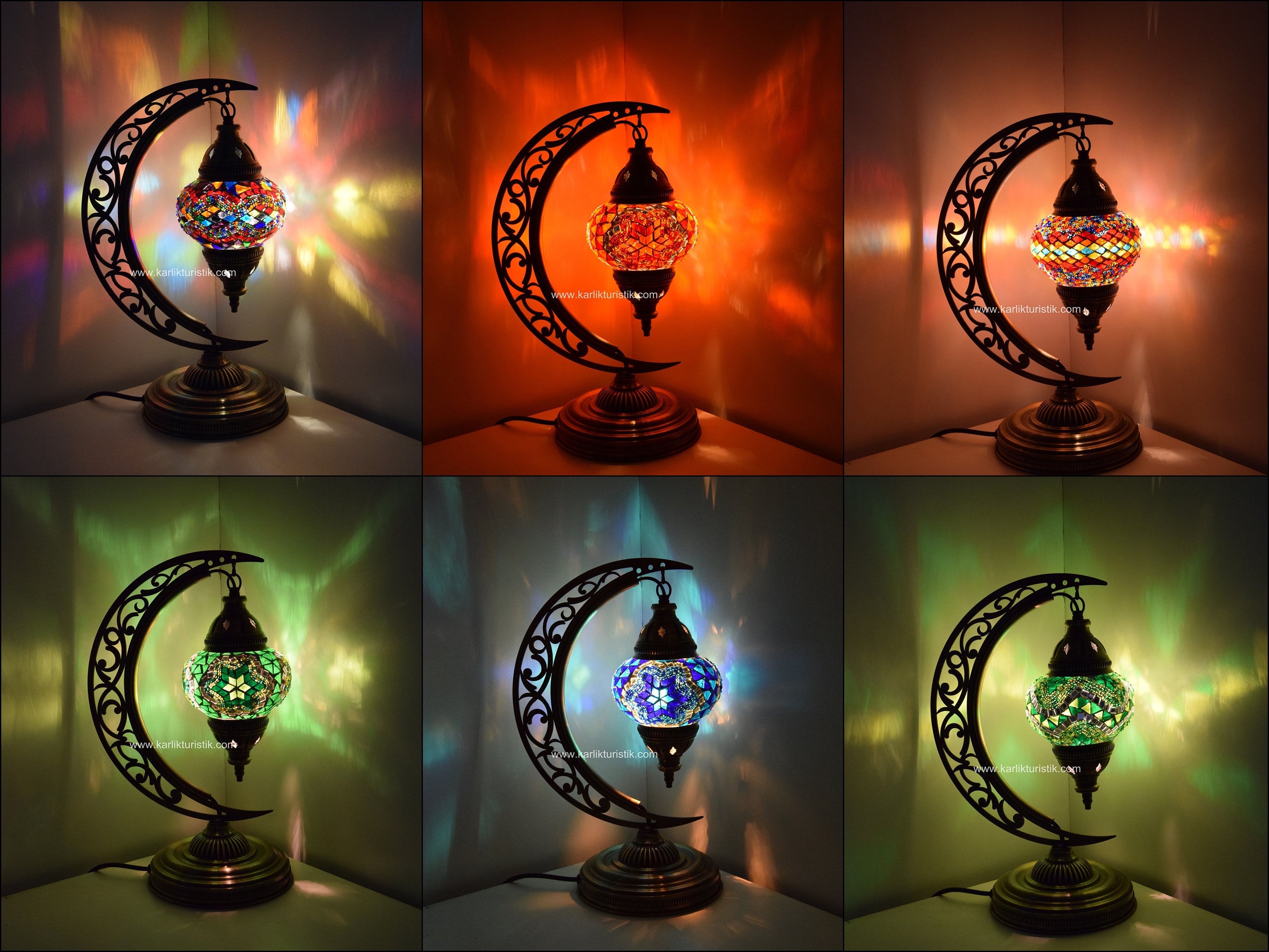 Mosaic Desk Lamp ,Moon romantic lamp,Moon Shape Turkish Moroccan Mo...