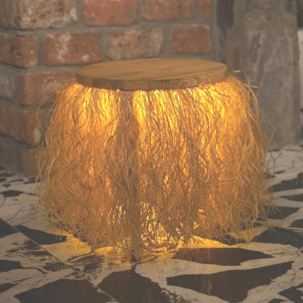 Neon Led Light Bohemian Coffee Table with Raffia, Neon Led Night Ba...