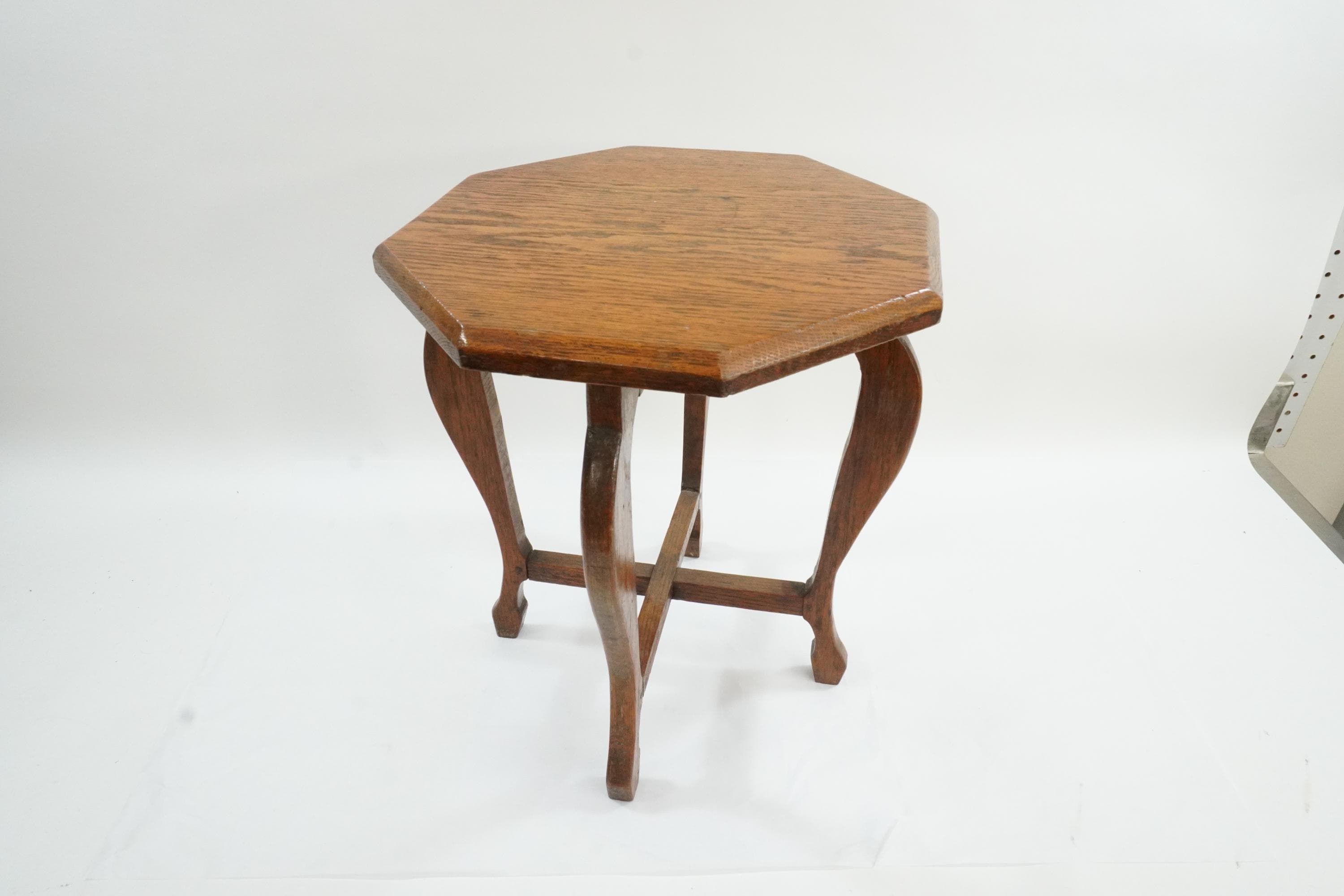 "This lot is for a vintage wood end table. Made of oak wood. Octagon shape Measures about 15 1/...