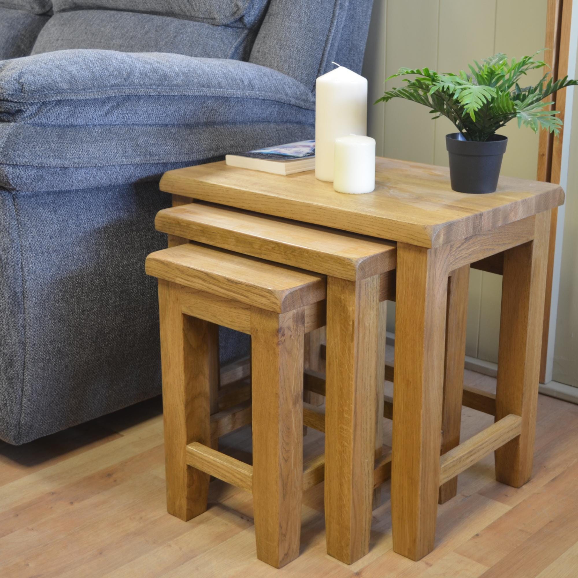Oak Nest of 3 Coffee Tables: Oak Side Nest of Tables for Living Roo...