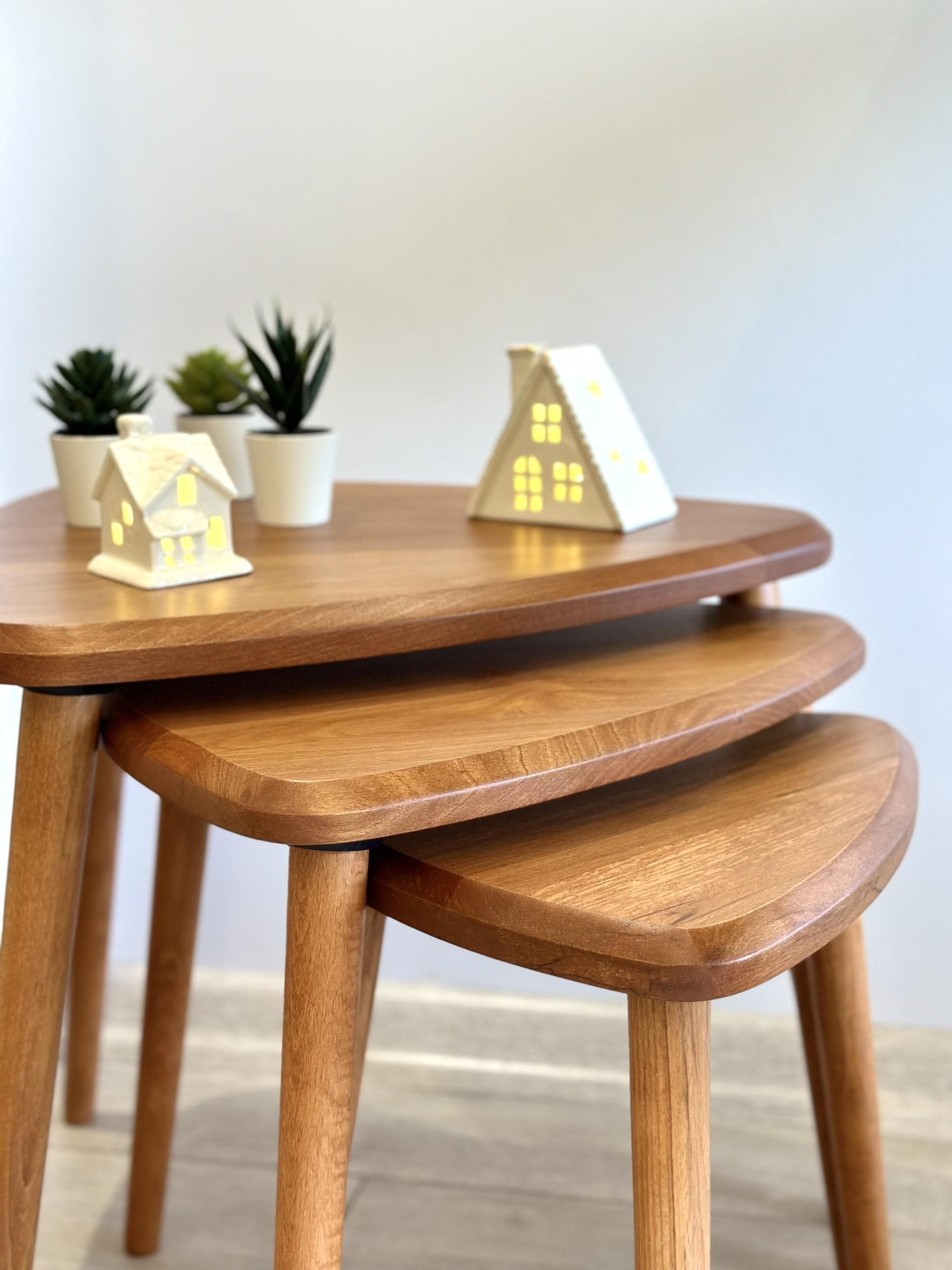 Handmade Light Oak Nesting Tables - Solid Wood Scandinavian Set of ...