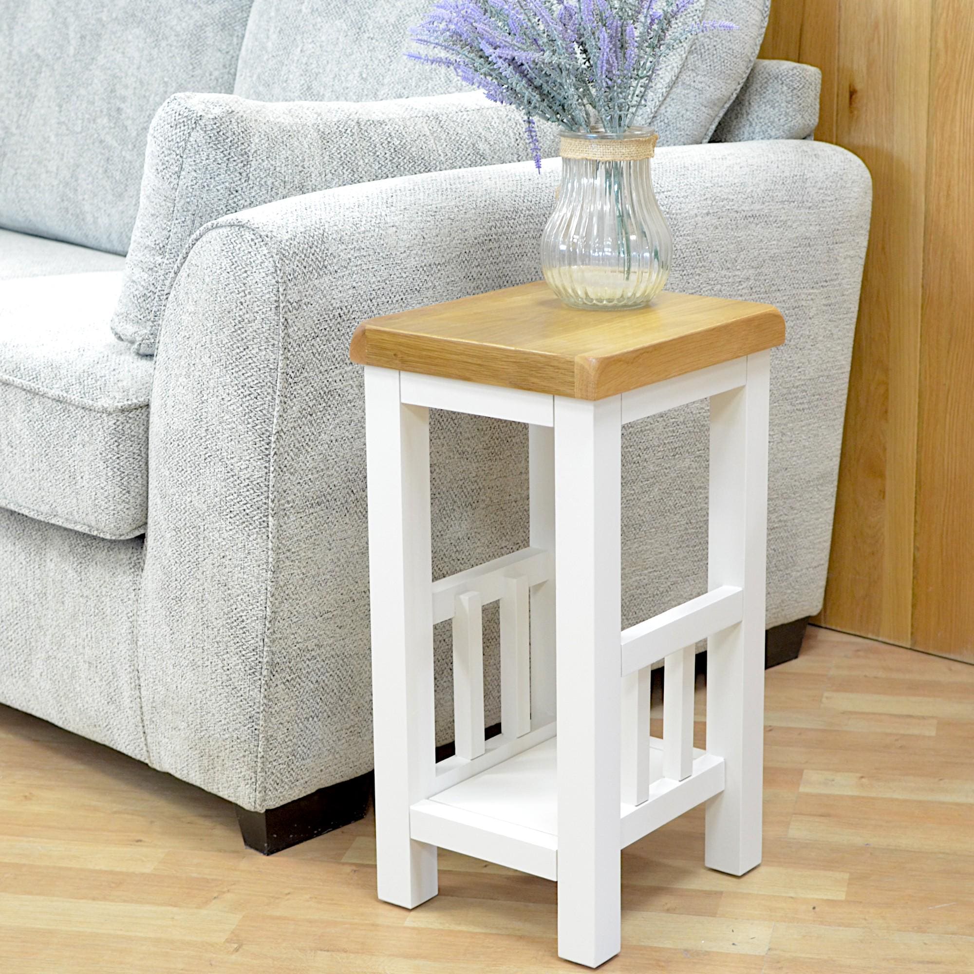 Painted Solid Wood Side Table: White & Oak, Magazine Rack, Asse...