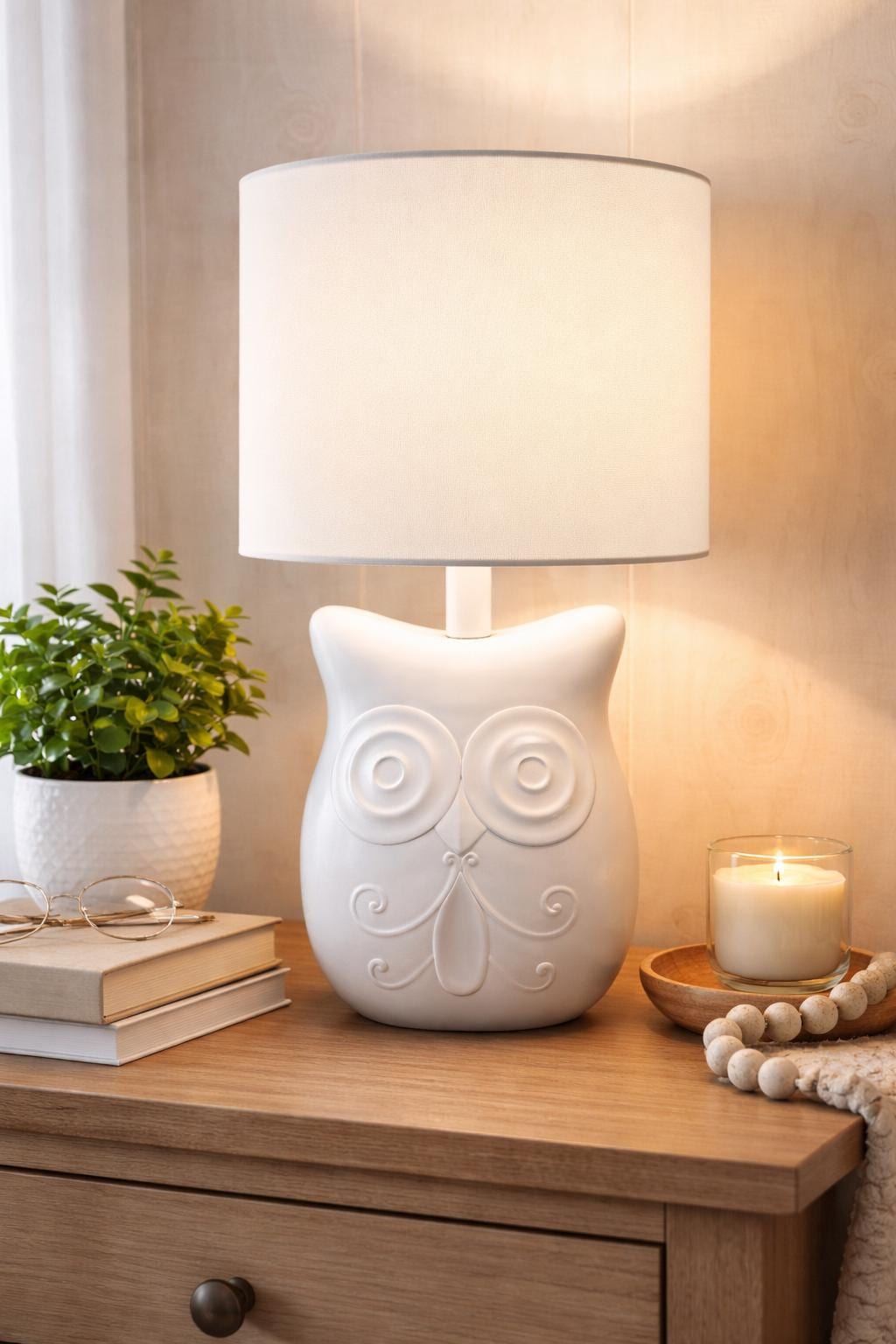 White Ceramic Owl Full Size Table Lamp - Modern Farmhouse, Cottagec...