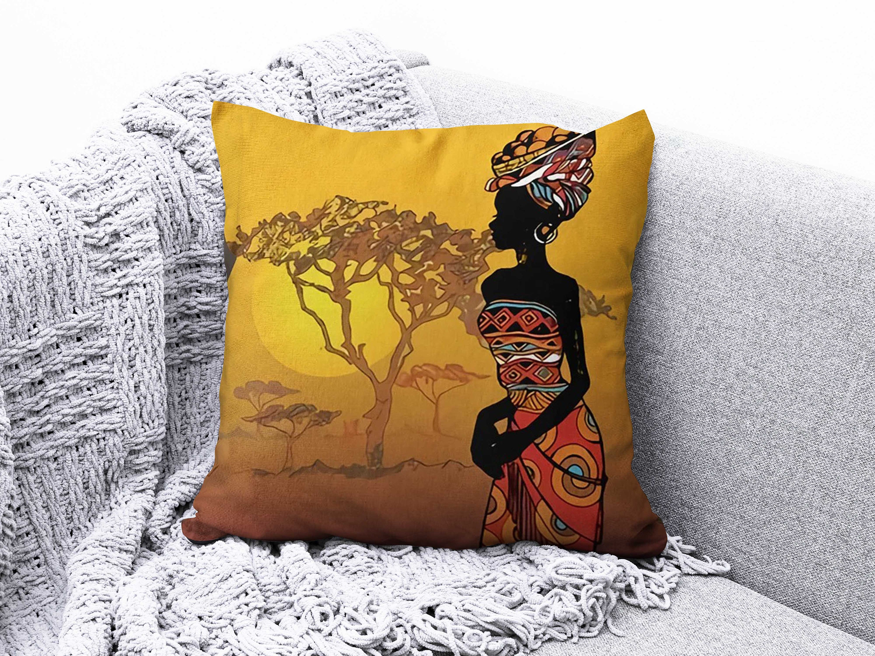 African Women Cushion Cover, Ethnic Cushion Case, Rustic Cushion Ca...
