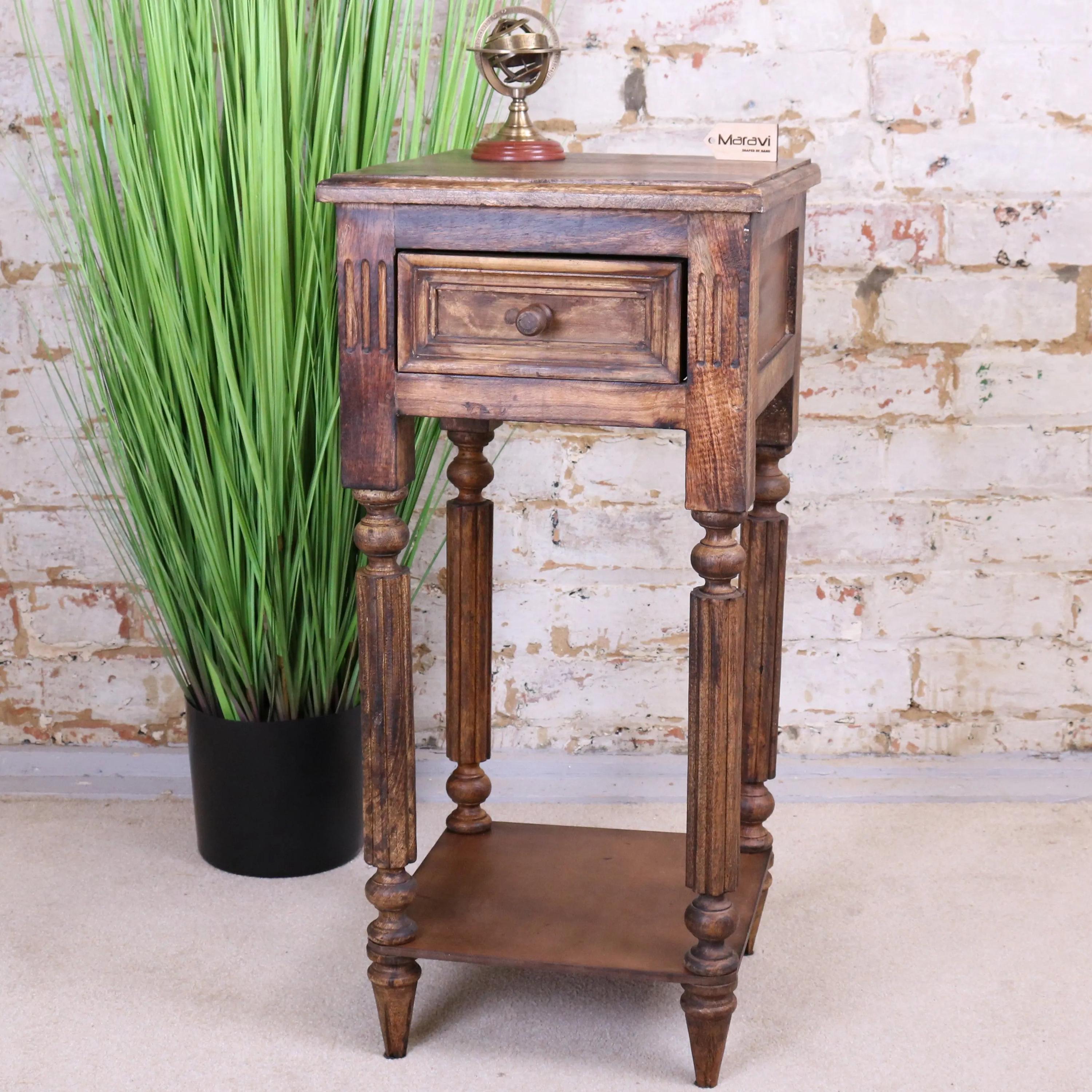 Antique French Wooden Brown Wood Tall Table Display Side Stand Disp...