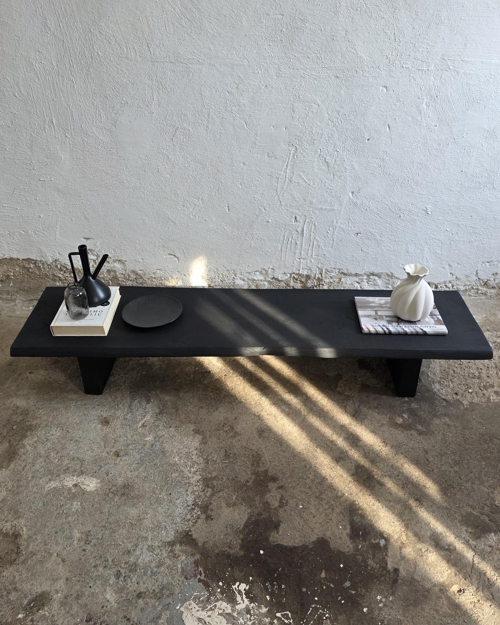 "Low console table, a decorative Wabi Sabi display table handcrafted from solid natural wood, e...