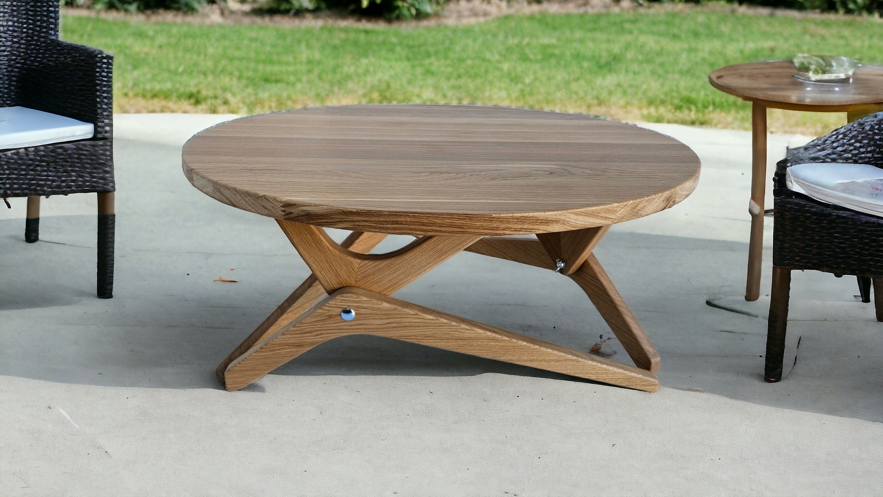 Transformable round wooden 2-in-1 coffee table in oak with variable...