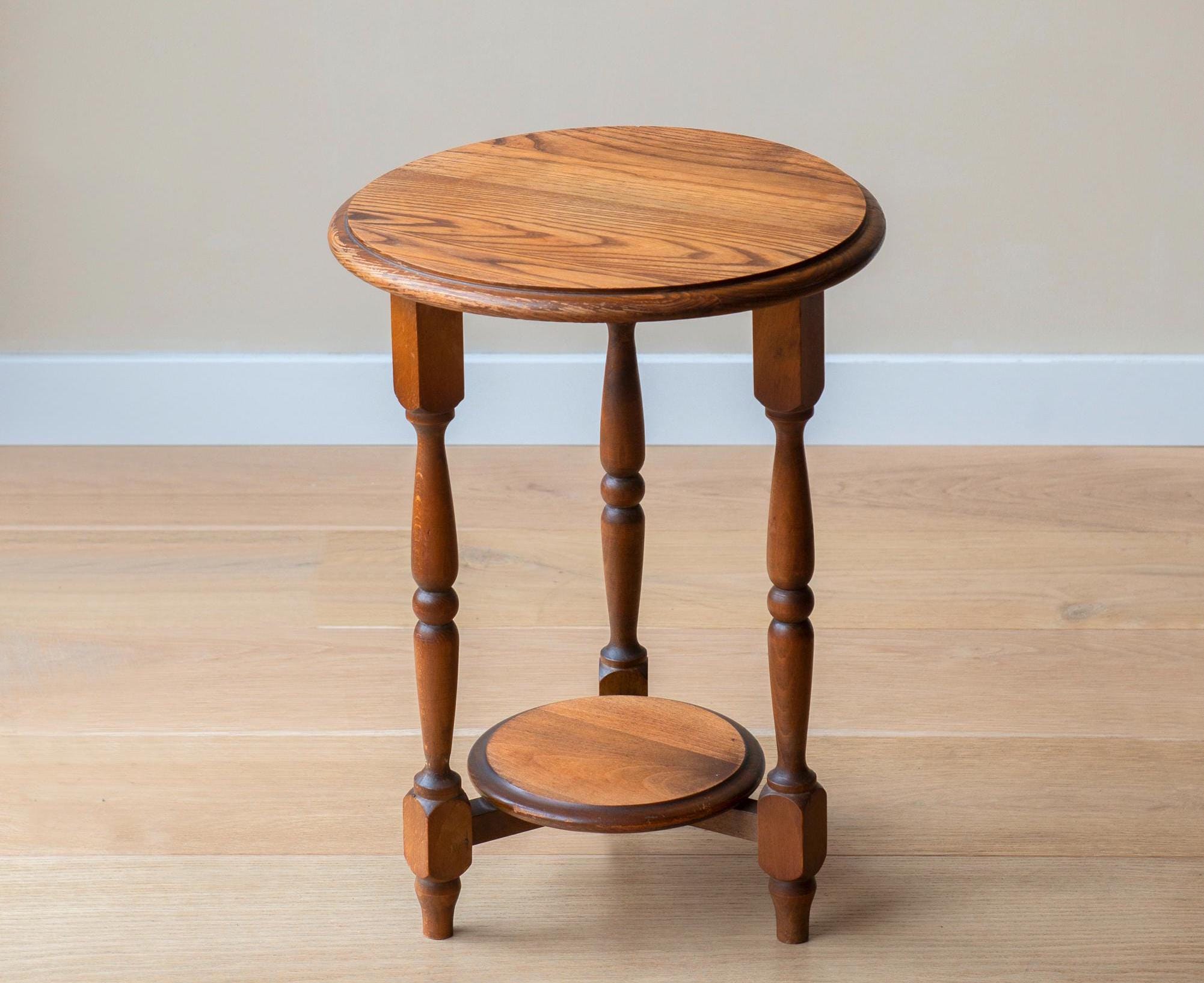 Beautiful etagere table with hand-carved legs. Crafted from oak wood, this Dutch handmade piece date...