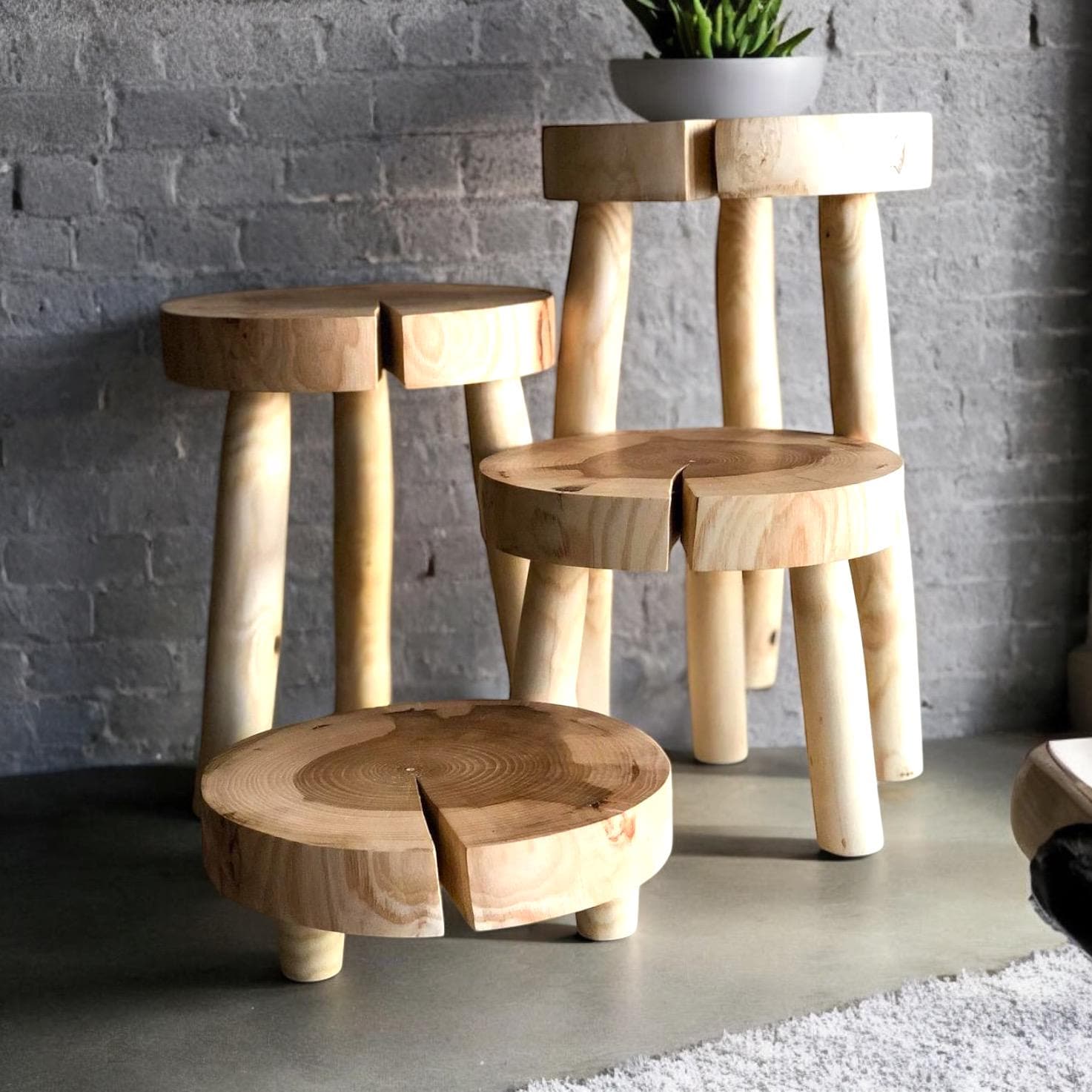 Wooden Stool. Modern Side Table. Indoor Plant Stand. Small Side Tab...