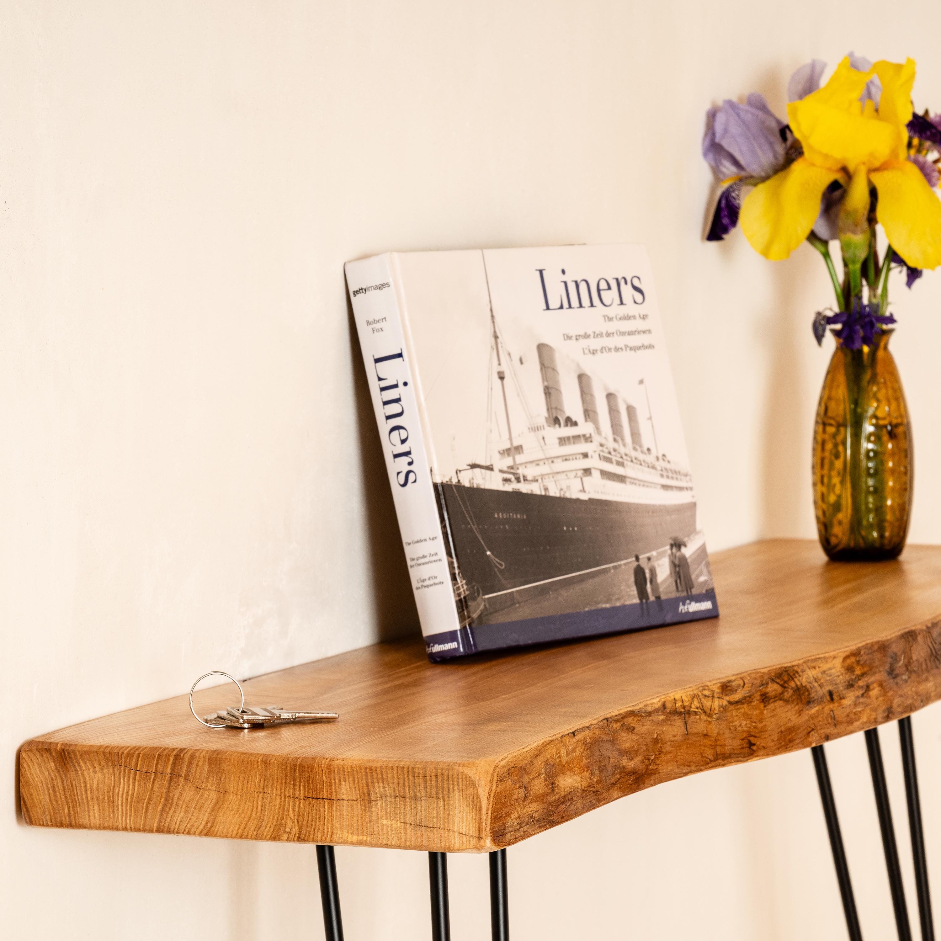 Live Edge Console Table, Oak and Ash wood, Hairpin Legs, Narrow Ent...