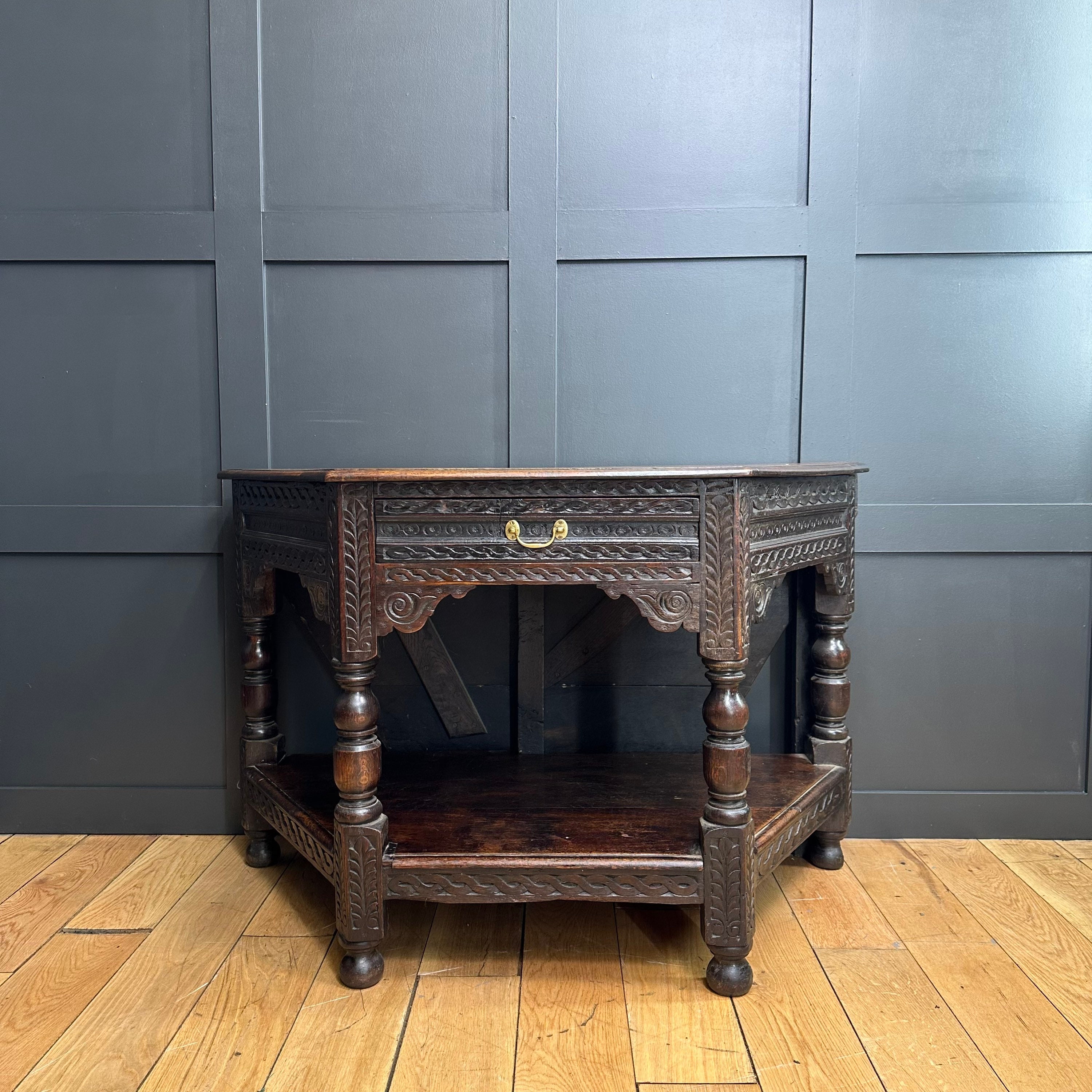 Antique Oak Credence Table: 19th Century Carved Sideboard