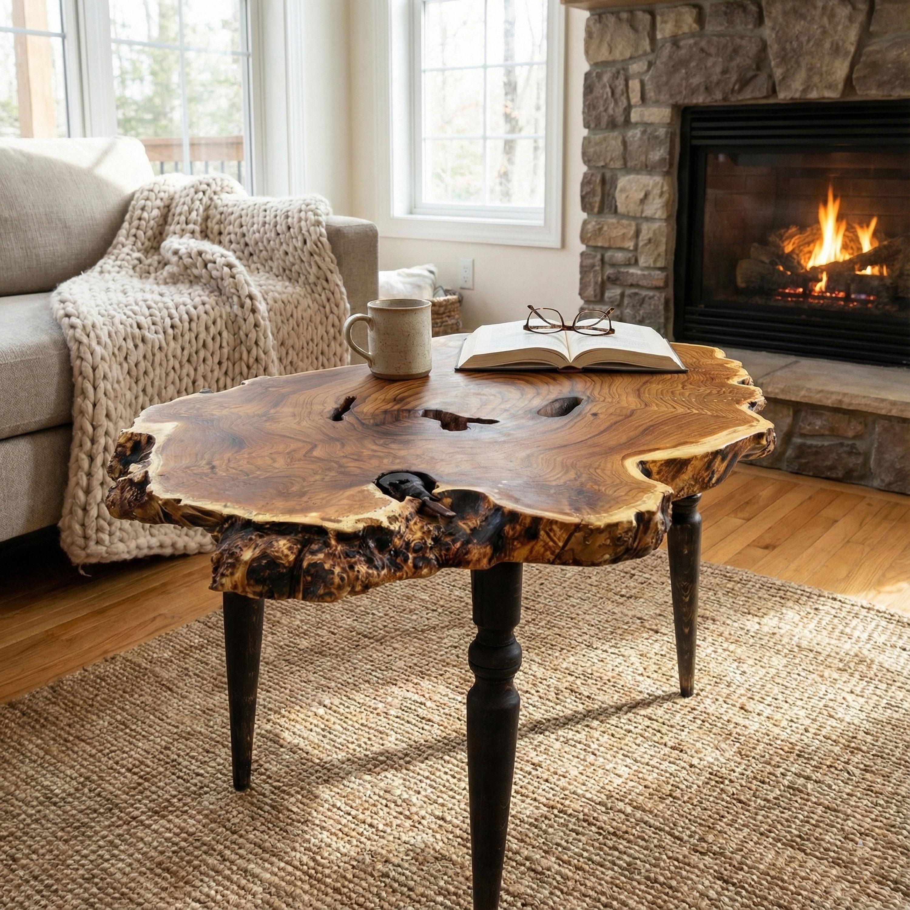 "Handmade Slab Wood Coffee Table, natural wood log and root coffee tables bring the elegance of...