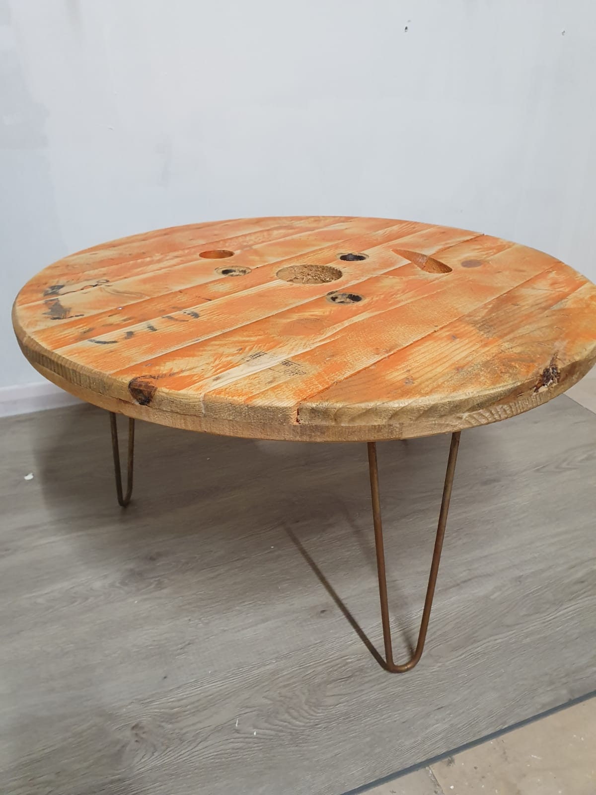 Cable Drum Coffee Table, wooden cable drum, reclaimed wooden table