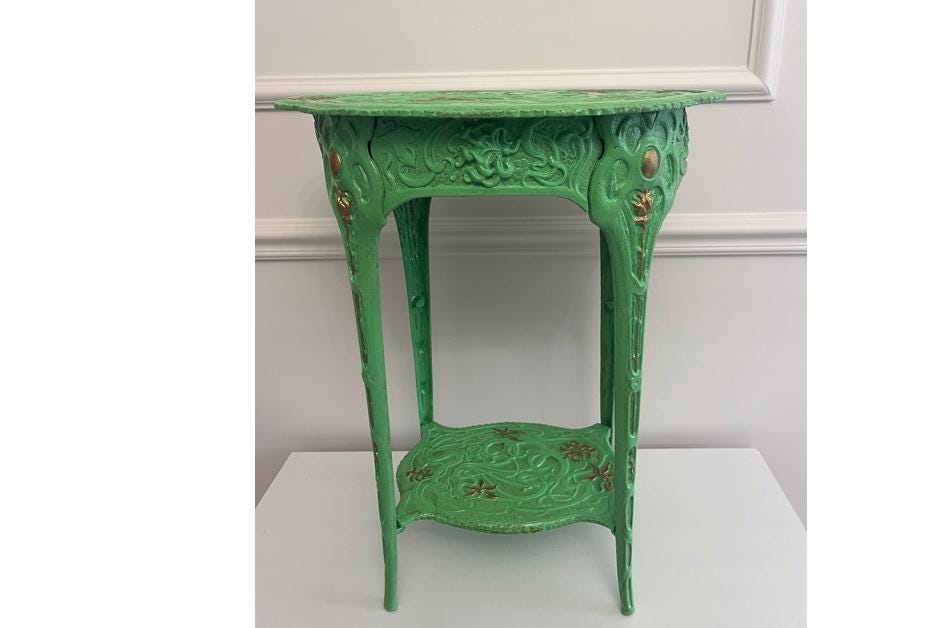 Cast Iron Flower Table: Green Rustic Vintage Coffee Table
