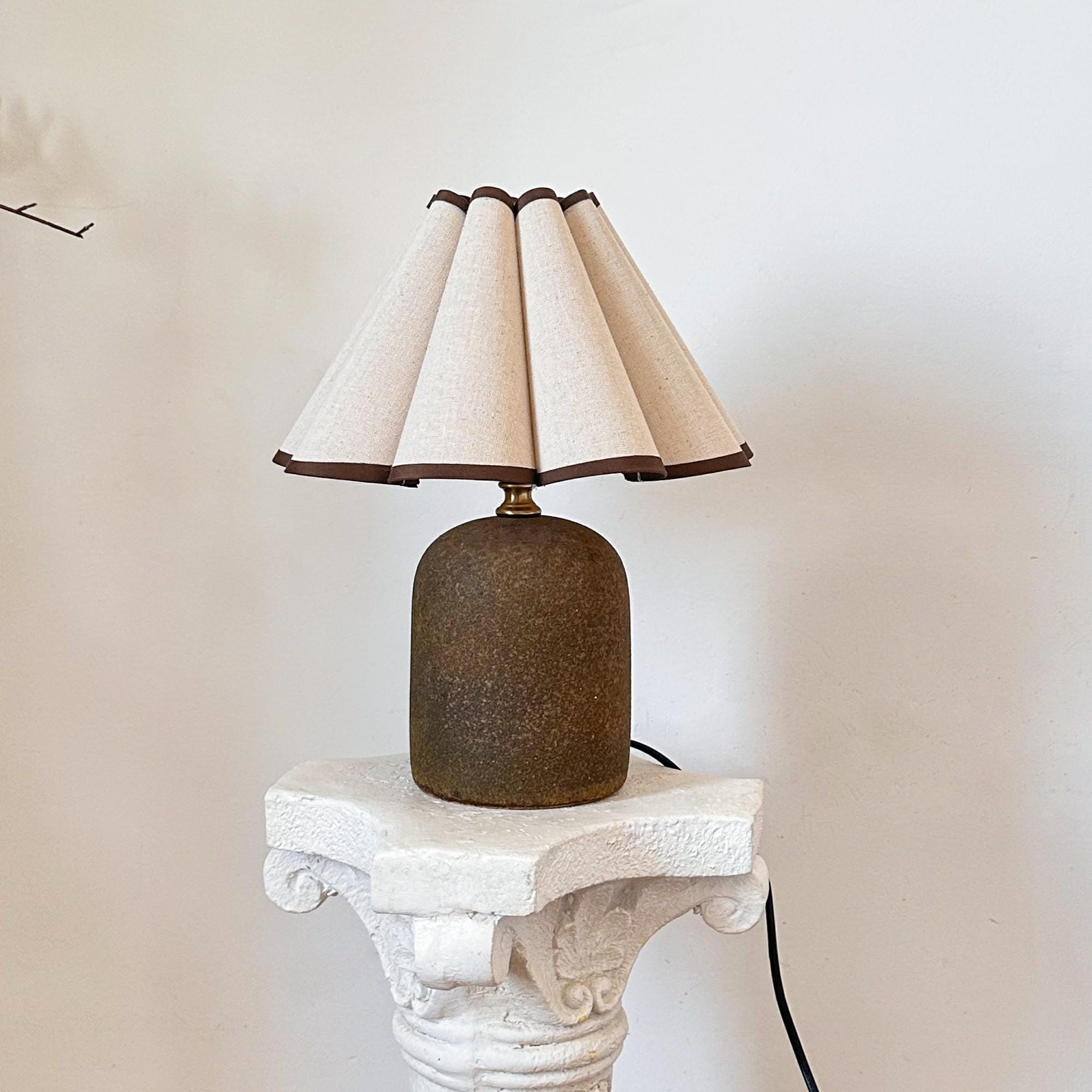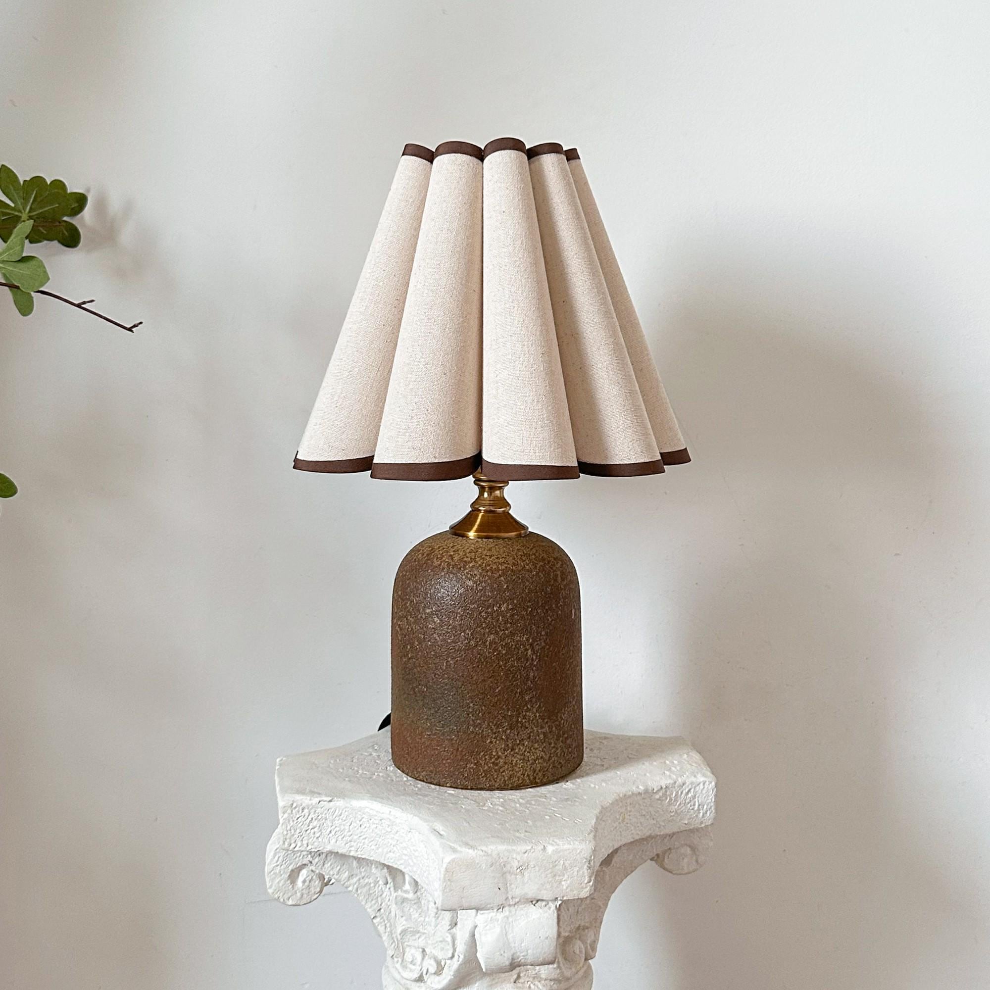 Handmade Vintage Brown Stoneware Table Lamp 110-240v, Pleated Scall...