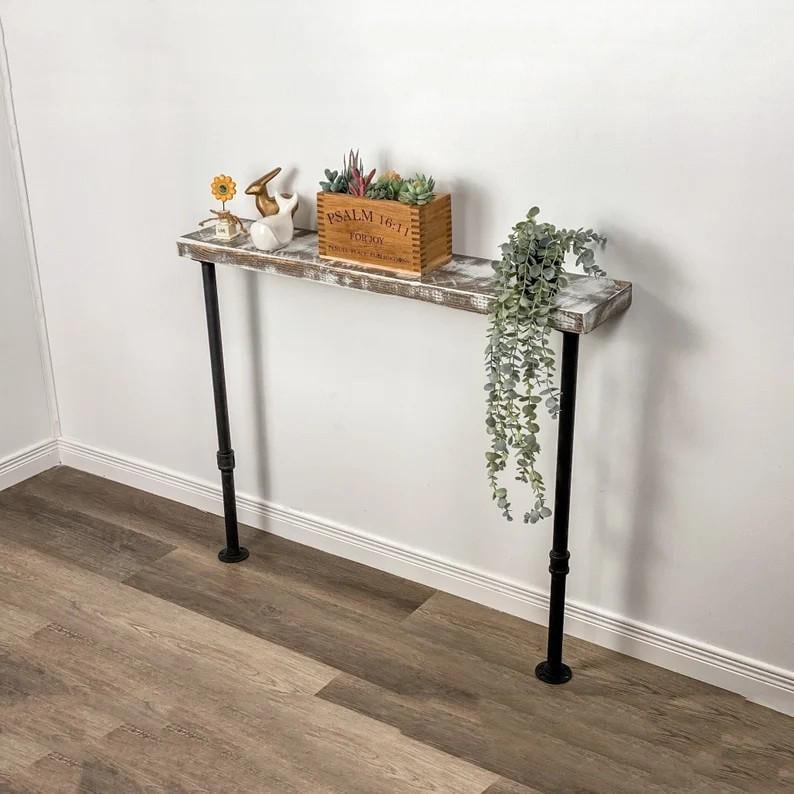 Rustic Narrow Console Table with Industrial Legs | Distressed Wood ...