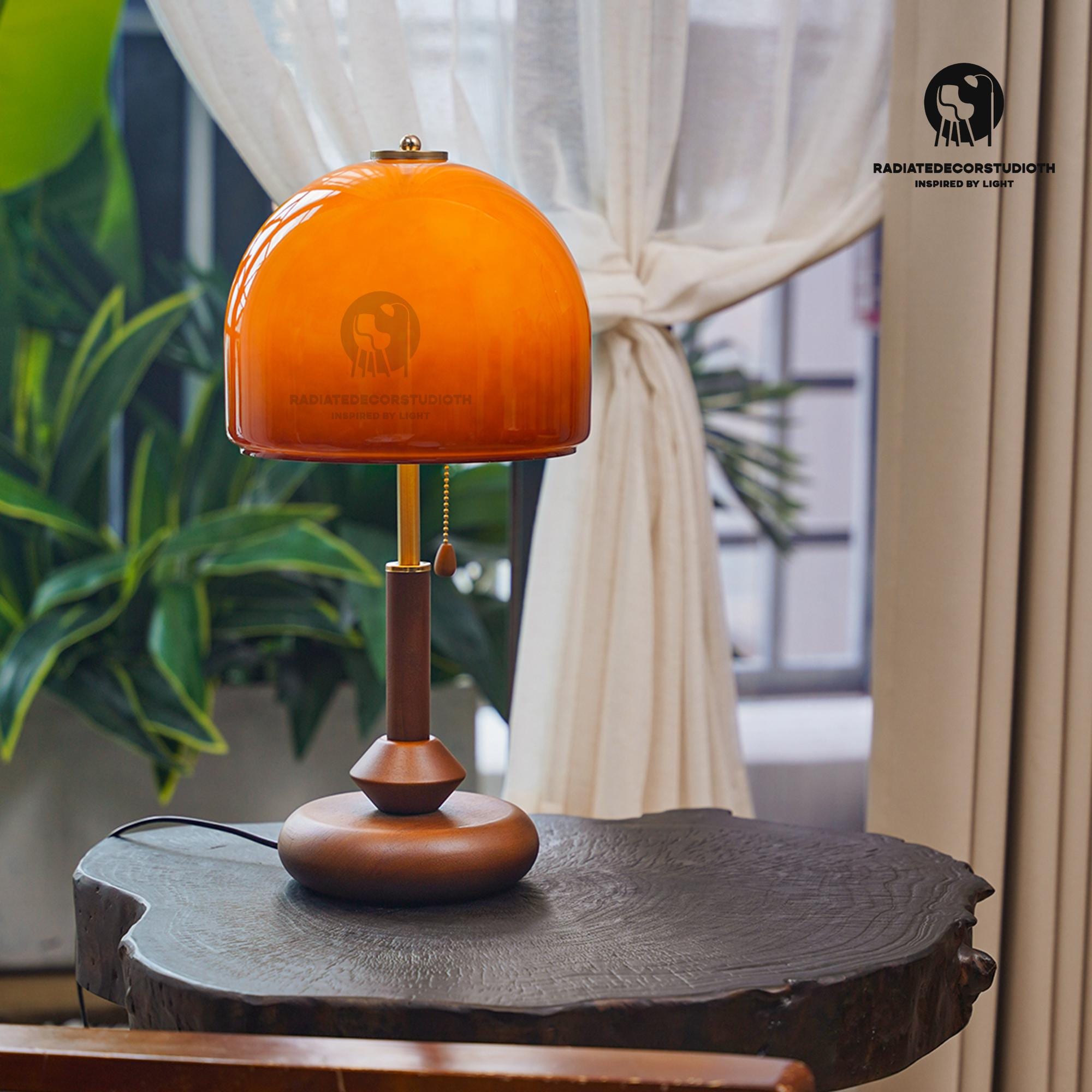 Inspired by American style, this antique vintage walnut colored glass decorative table lamp embodies...