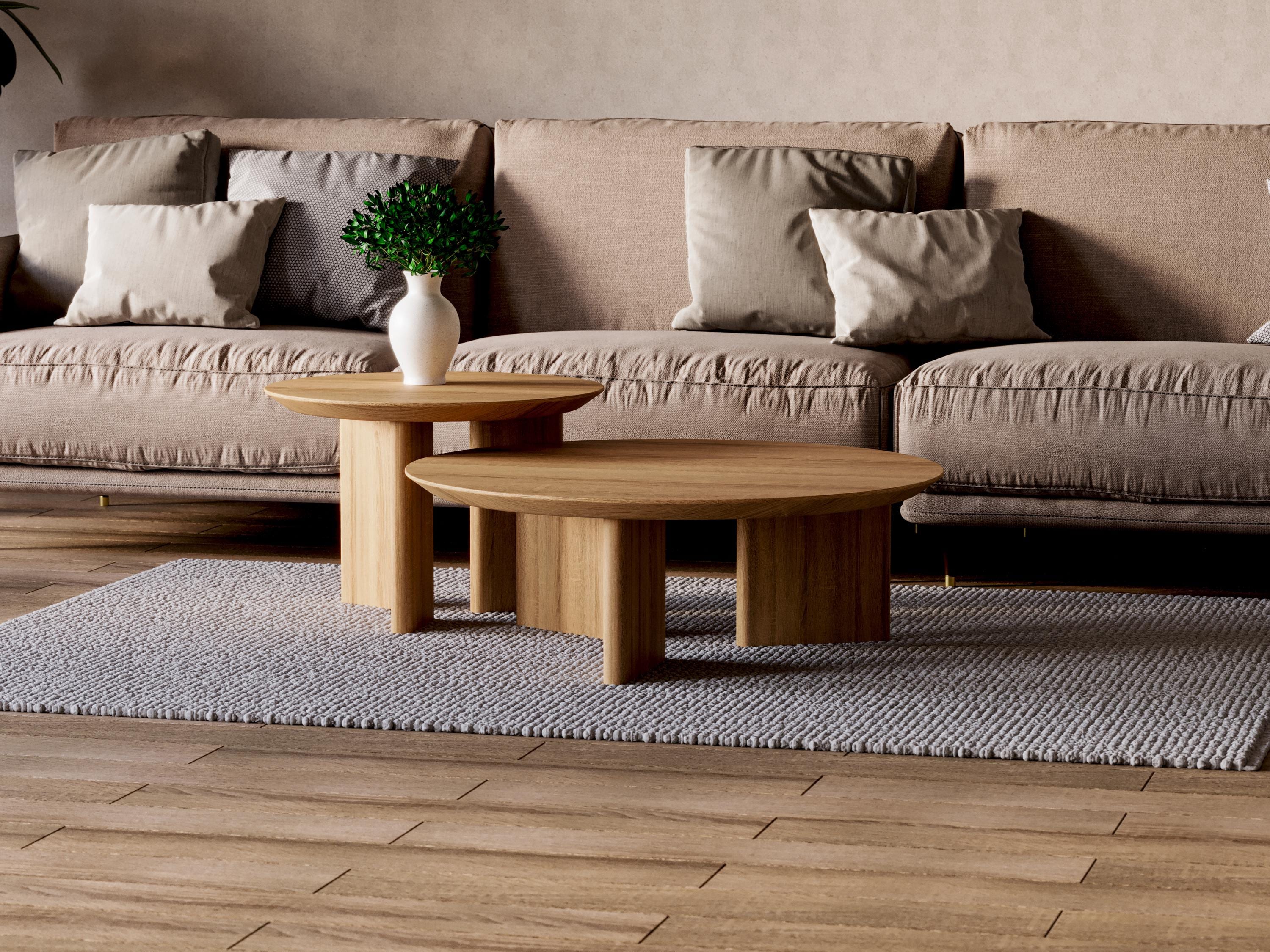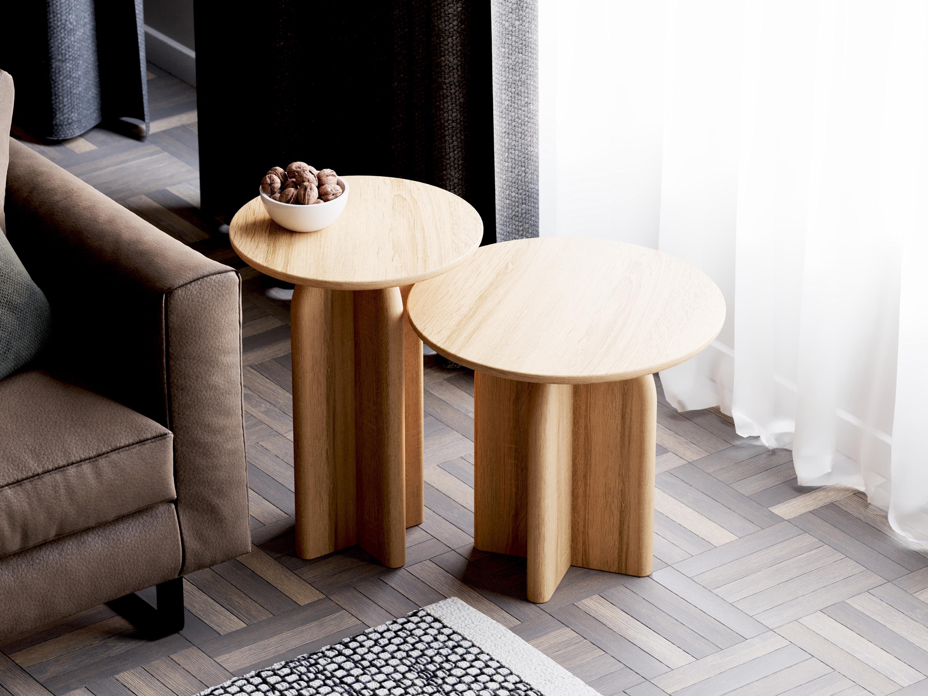 Set of Side Tables - Round Wooden End Table - Solid Oak Wood Table ...