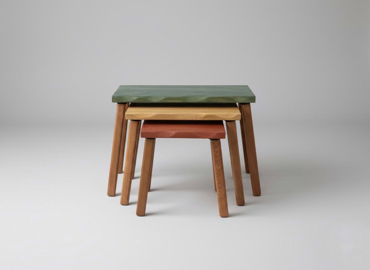 Handmade solid wood nesting tables designed for modern and cozy living spaces. This three-piece wood...