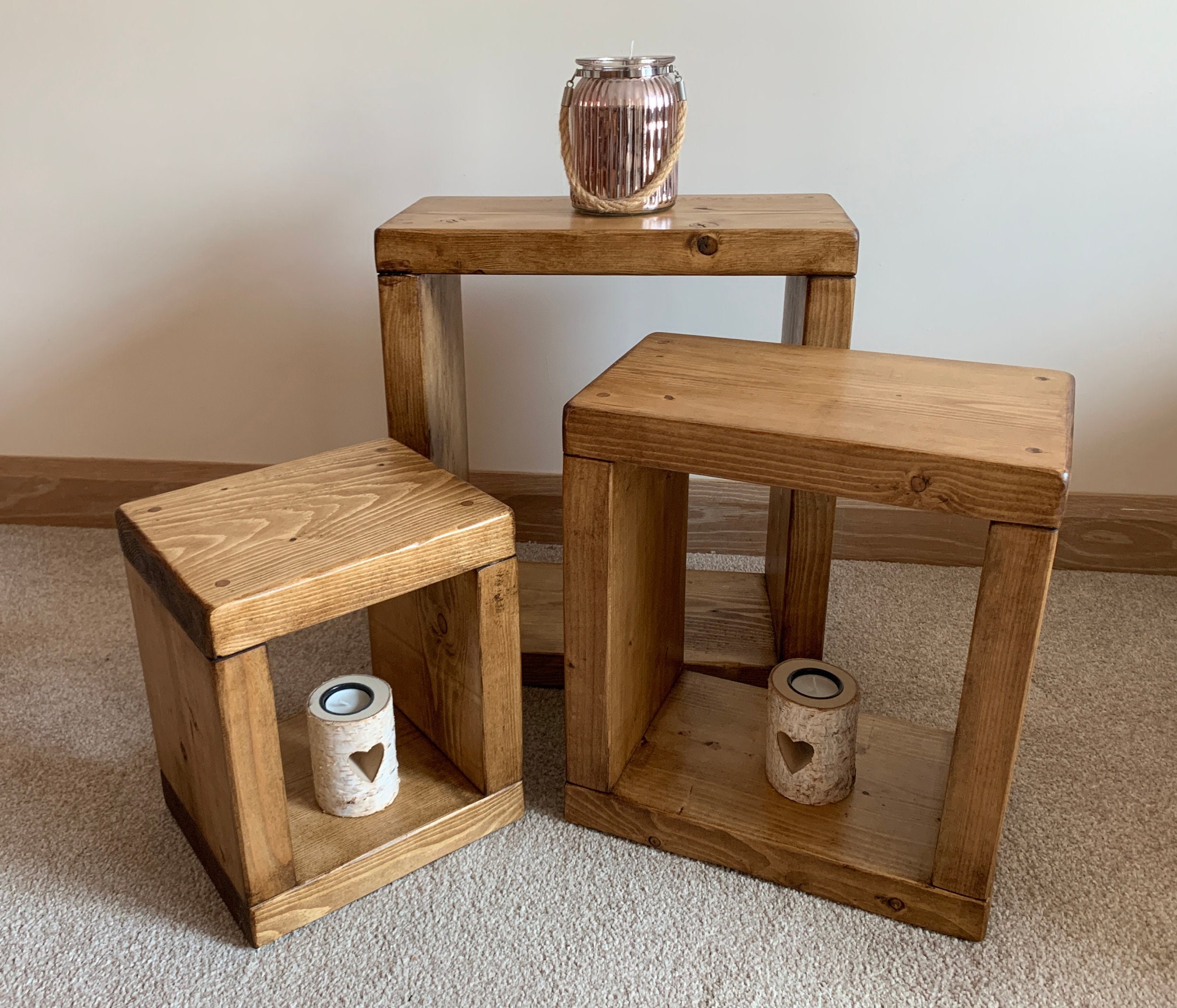 Nest of tables Rustic side table End Table Cubes oak pine walnut