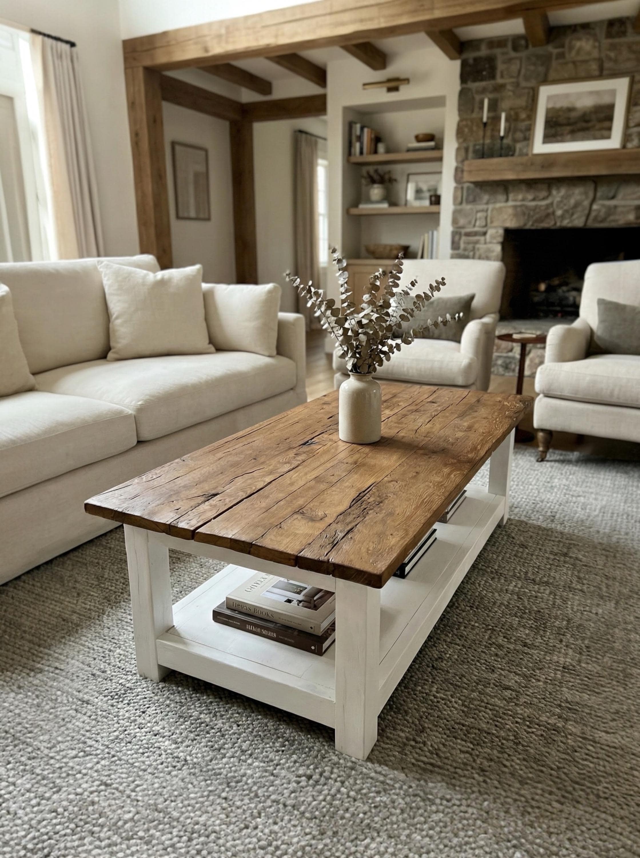 Rustic Reclaimed Oak Coffee Table, Handcrafted Solid Wood Table wit...