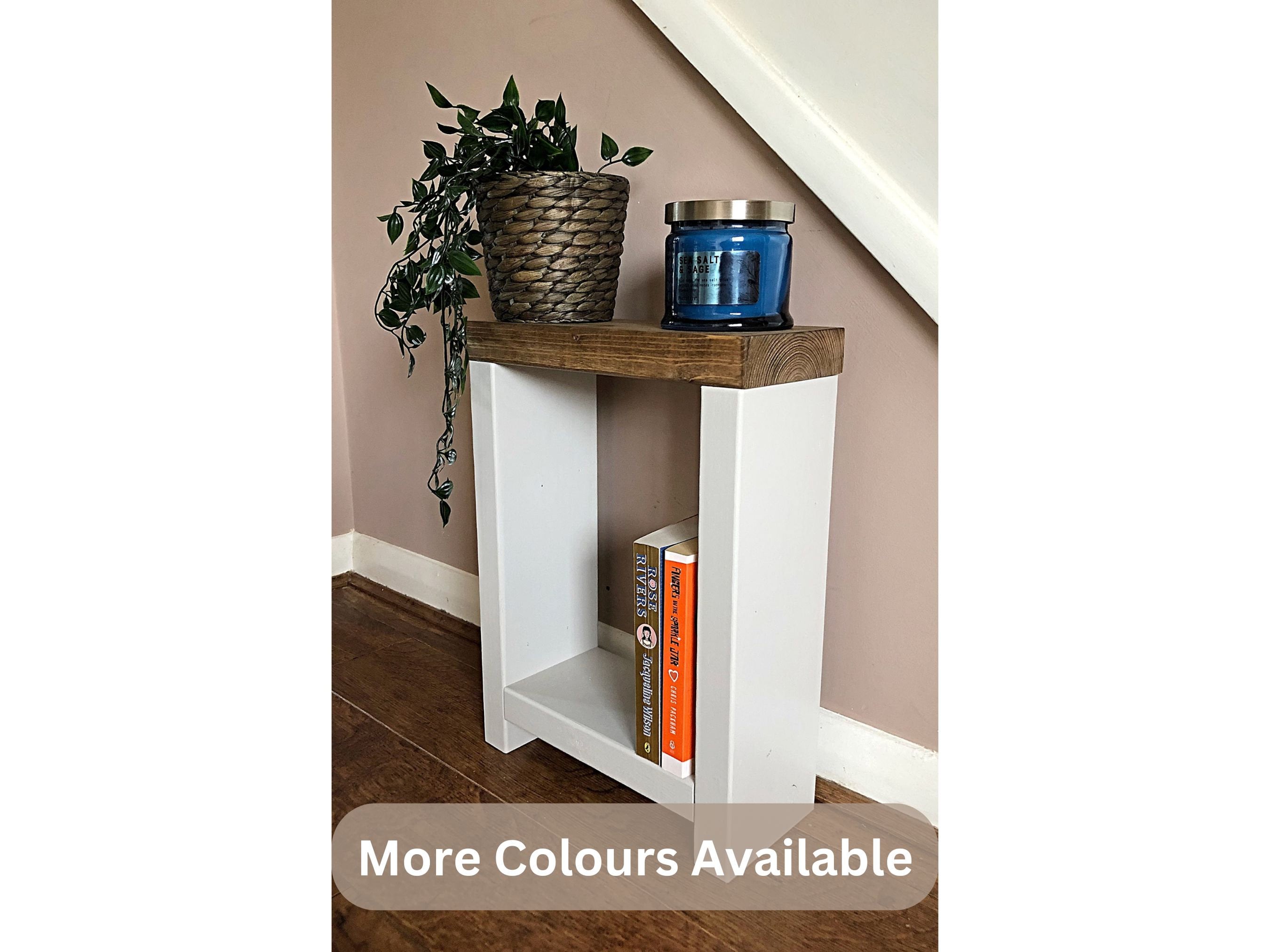 A slim rustic wooden side or end table which would compliment any room in the house. can also be use...