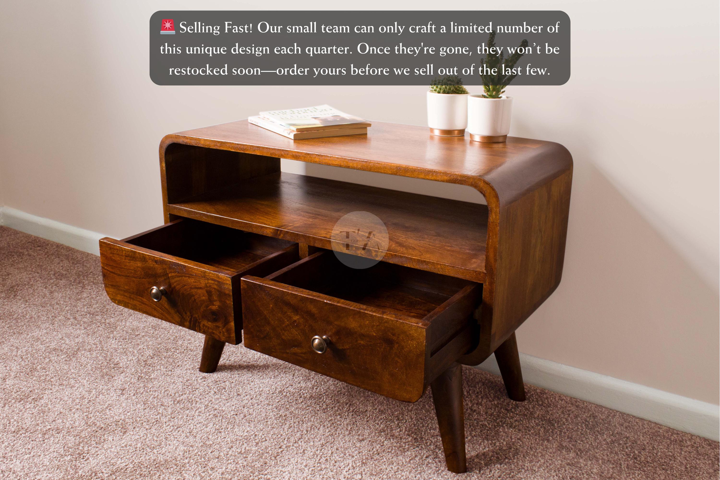 Our mid-century solid wood TV Stand with storage drawers will add a unique touch of natural elegance...