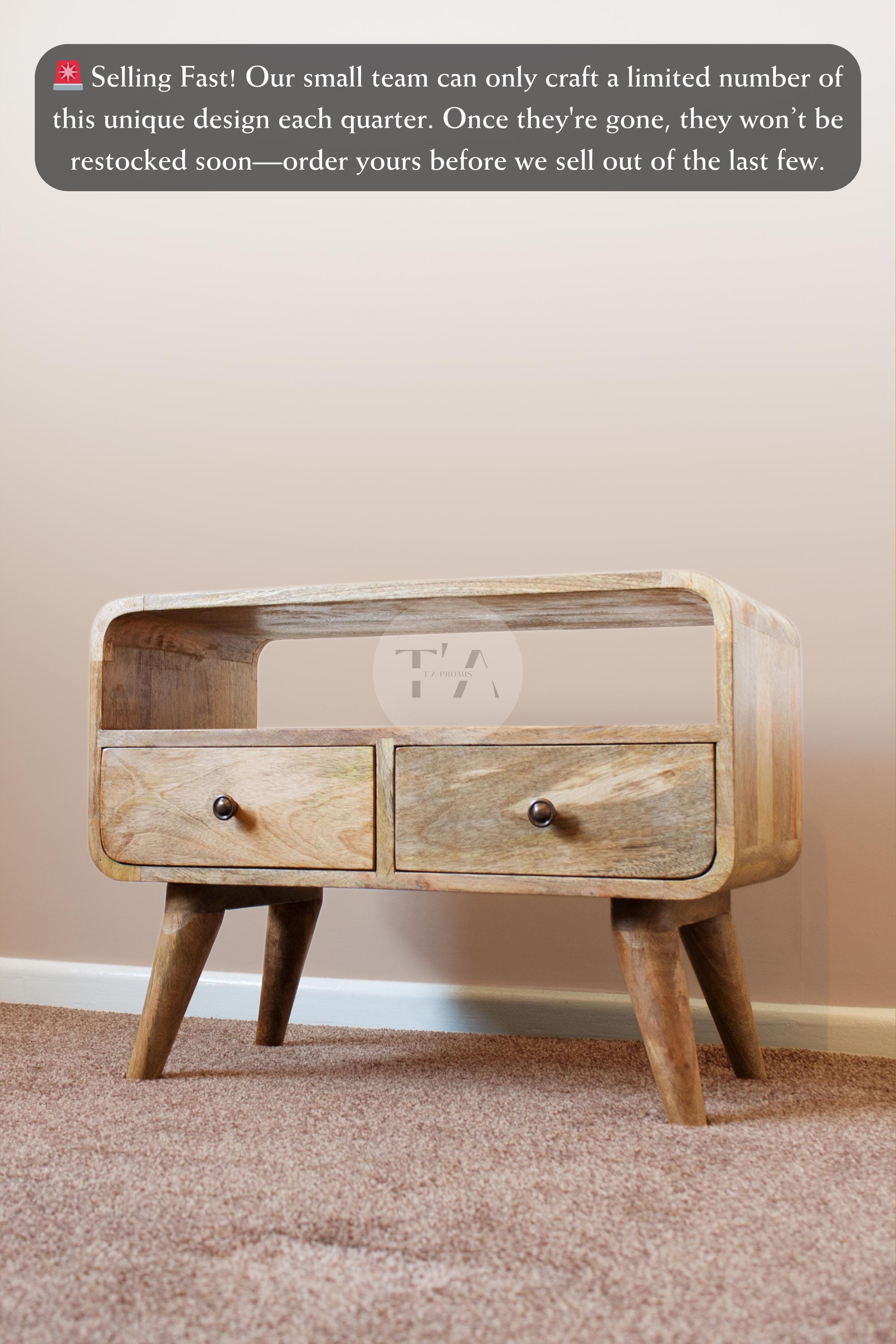 Our small, compact, natural light mango wood TV Stand with two spacious drawer units will add a uniq...