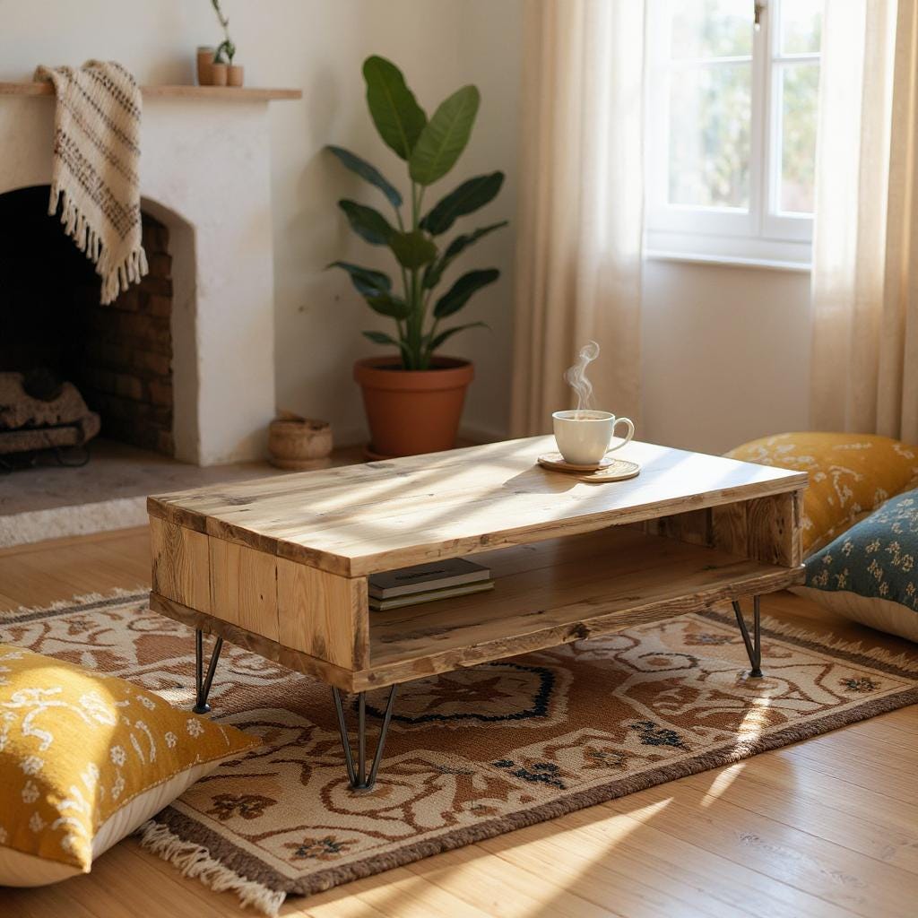 Reclaimed industrial Scaffold Wood Hairpin Legs Coffee Table / TV S...