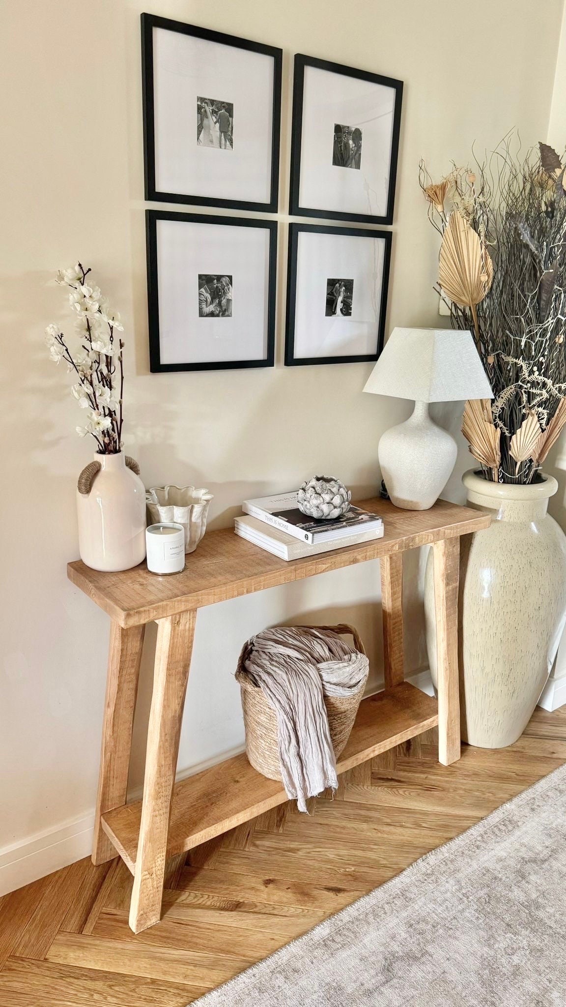 This is our rustic solid wooden console side table, this versatile piece seamlessly merges functiona...