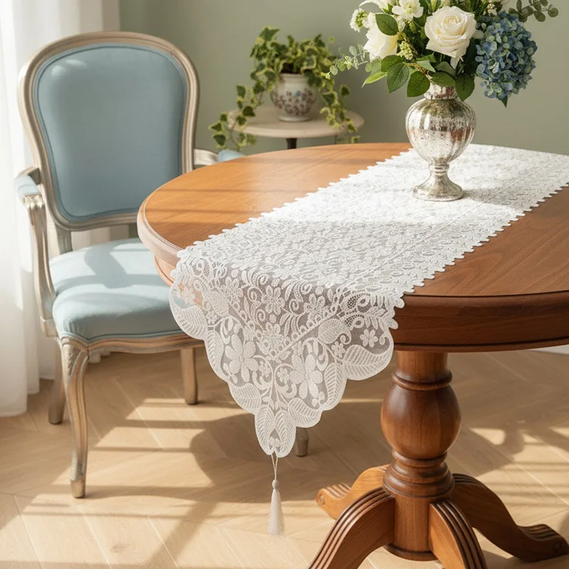 Retro French Lace Table Flag White Embroidered Long Tablecloth for ...