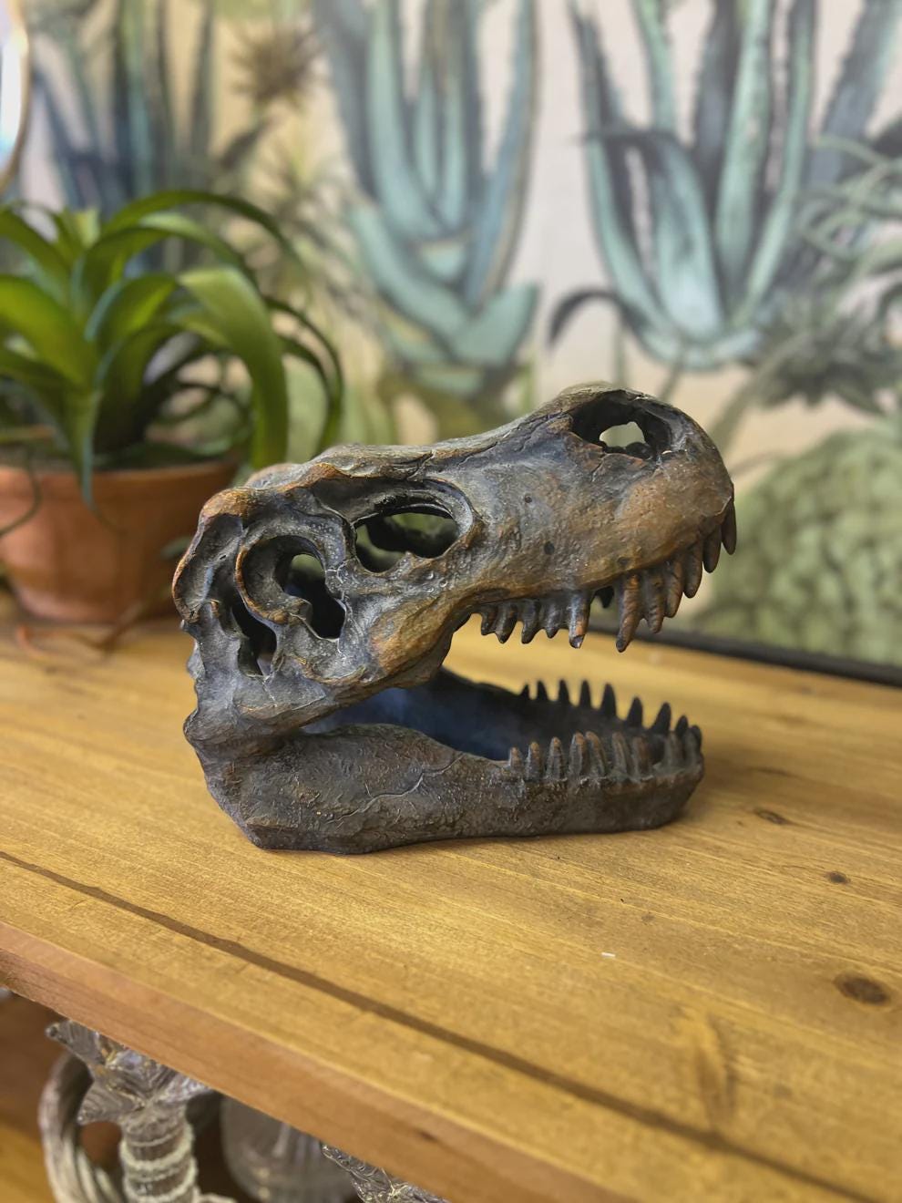 T Rex Skull Table Decor | Dinosaur Resin Statue for Home Office She...